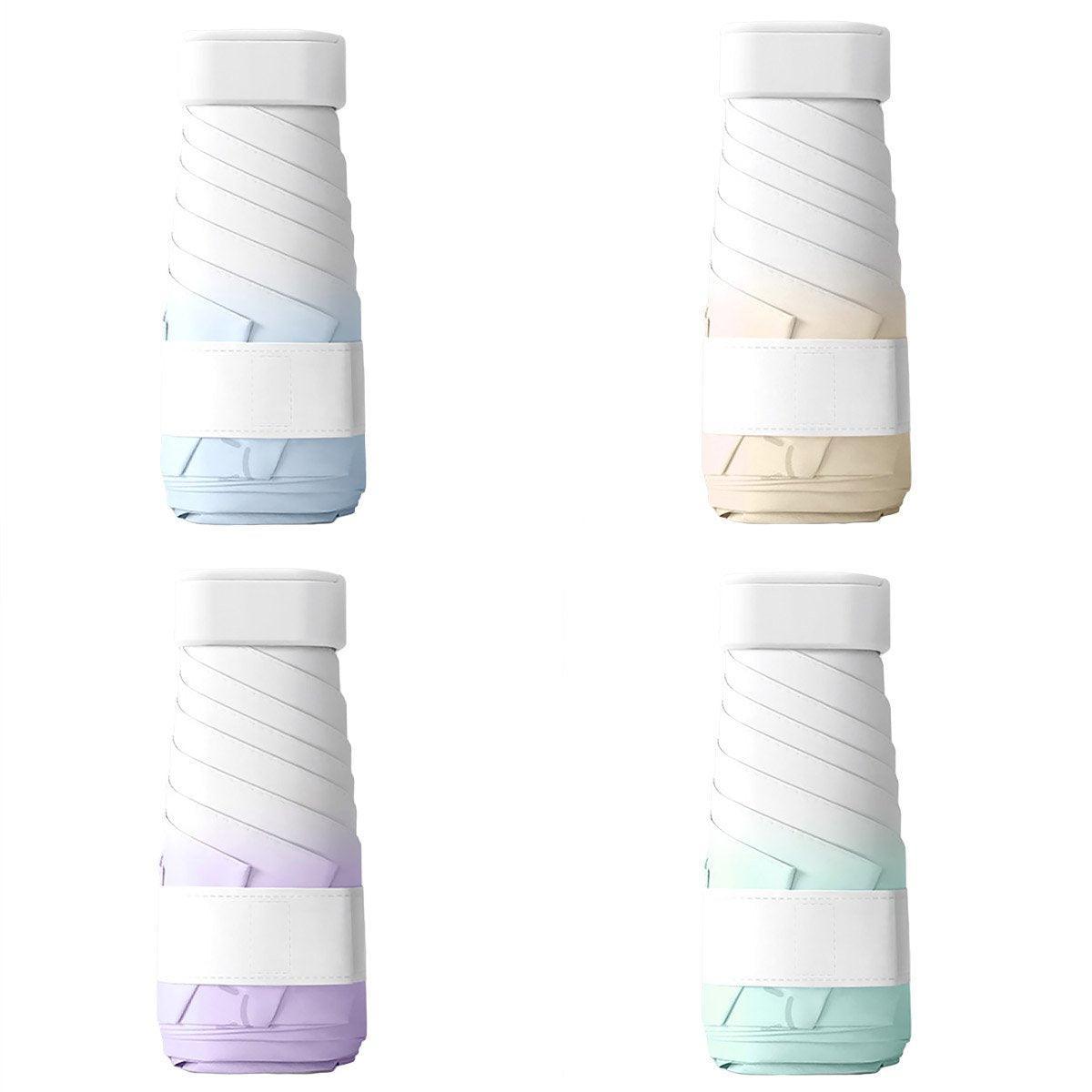 This ultra-light mini umbrella provides excellent UV protection with a UPF 50+ rating and features a stylish gradient design. It is constructed with a sturdy 6-rib frame made from aviation-grade materials, ensuring durability and wind resistance. The compact size makes it easy to carry, while offering ample coverage when opened, making it suitable for both sun and rain protection for men and women.