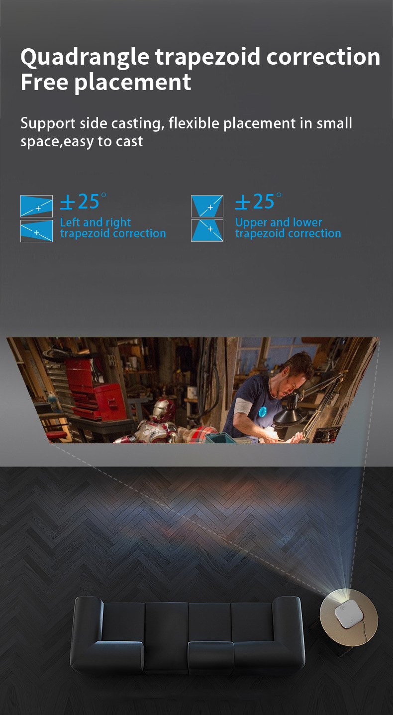 This mini portable HD projector offers a convenient way to enjoy a cinematic experience anywhere. It features a large screen display, accurate color reproduction through gamut compensation, and flexible positioning options. Its compact design with a carry handle makes it easy to transport and set up in various locations for movies, presentations, or gaming.