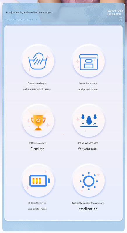 This mini portable oral irrigator offers a compact and efficient solution for maintaining oral hygiene. It features multiple cleaning modes, a large water tank, and advanced sterilization to ensure a hygienic and effective cleaning experience. Its waterproof design and magnetic charging make it convenient for travel and daily use.
