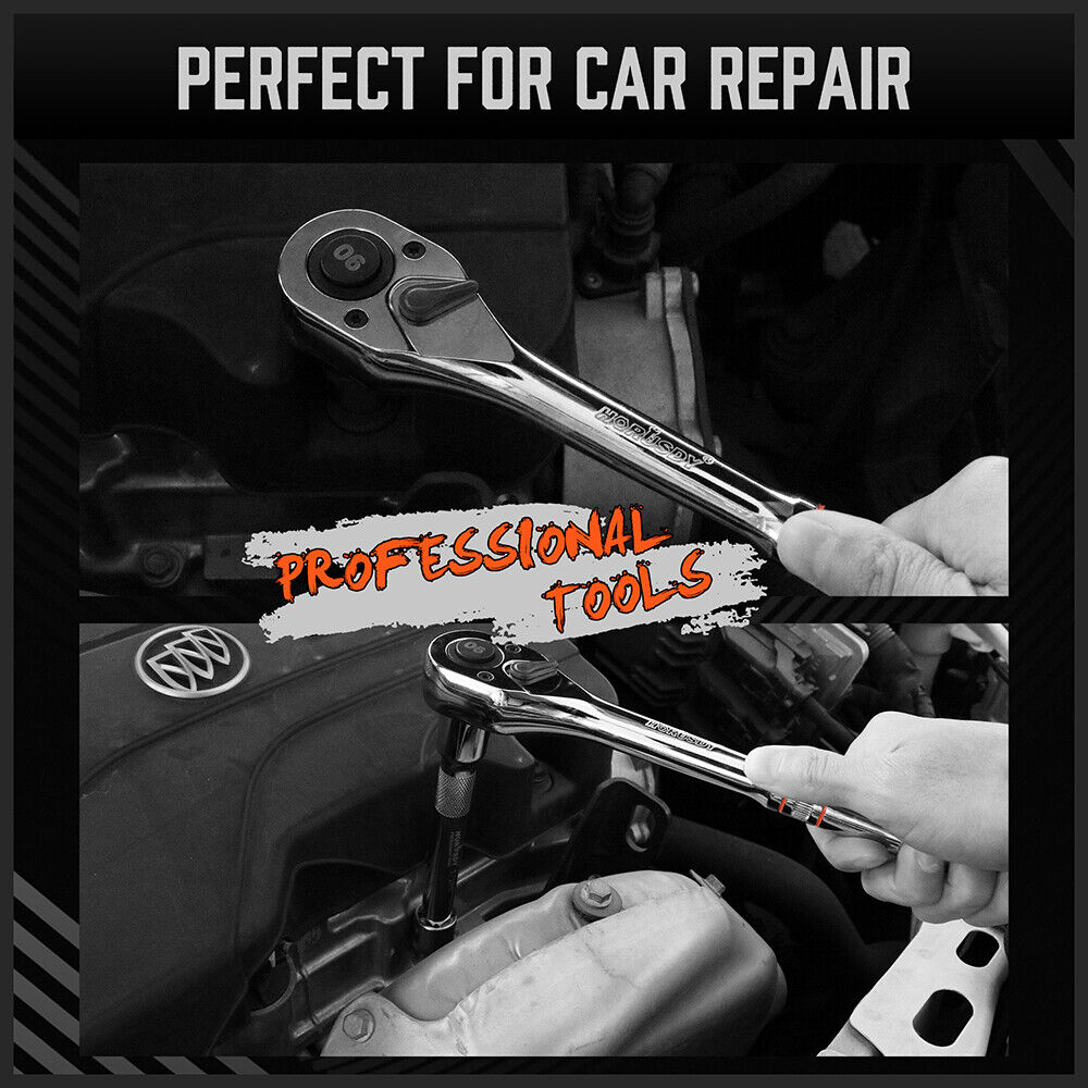Mini Ratchet Spanner 1/2 3/8 1/4 Drive 90 Tooth Extension Bar Workshop With Bag