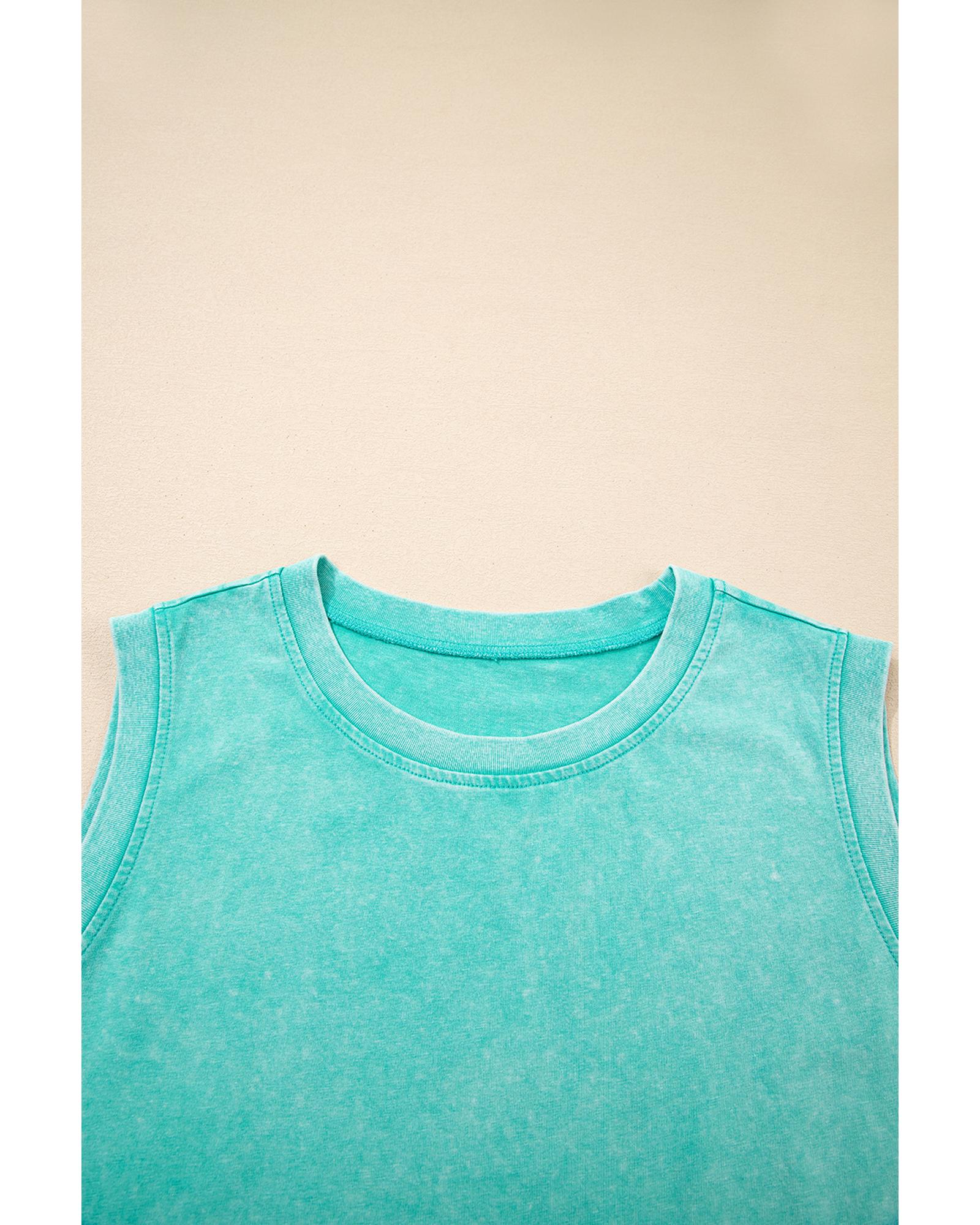 This mint green two-piece set features a mineral wash design, combining a tank top and a split skirt for a stylish and comfortable look. Made from 100% breathable cotton, it is suitable for casual outings, holidays, and sports activities. The relaxed fit and medium elasticity ensure a comfortable and flexible wear experience.