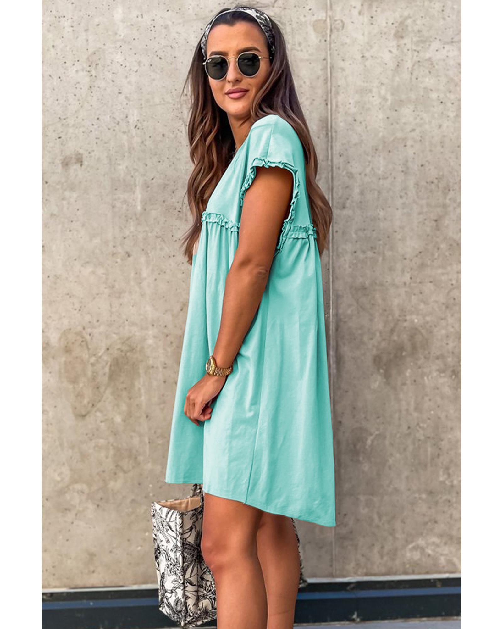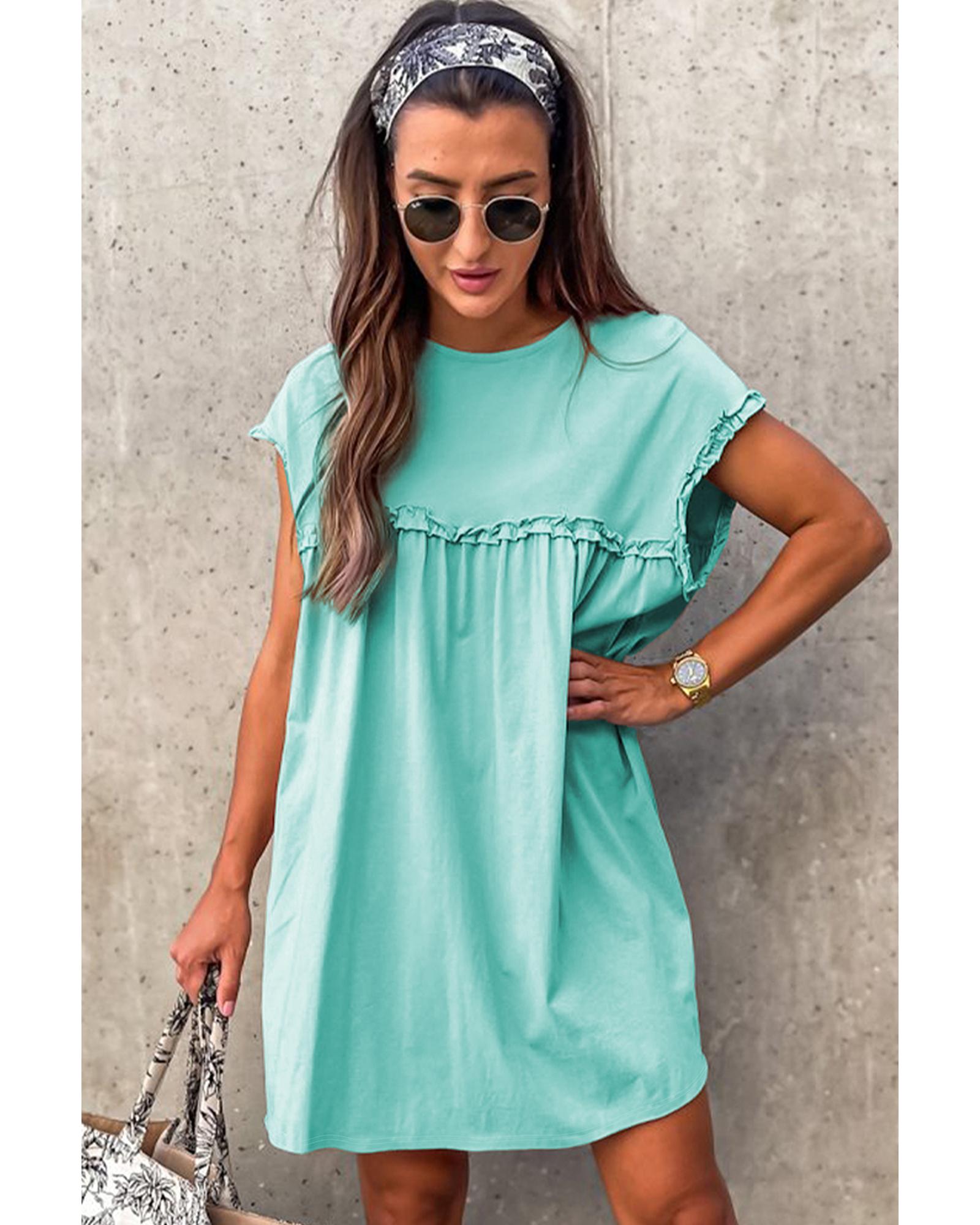 Mint Green Frilled Trim Crew Neck Loose Fit Mini Dress – L