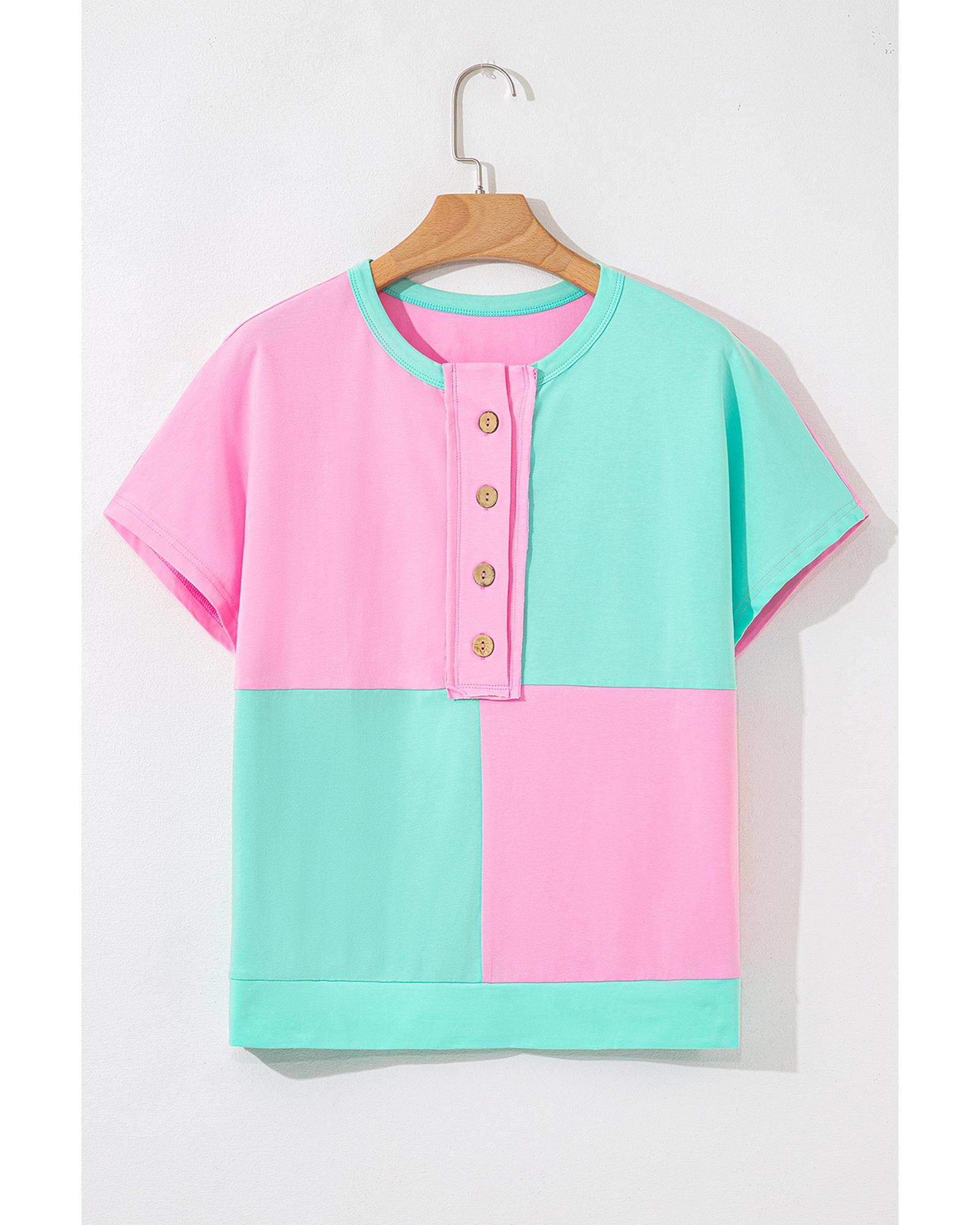 This stylish collared T-shirt features a two-tone color scheme with a contrasting design that adds a vibrant touch to your wardrobe. The half-button front detail provides both a functional and fashionable element, making it suitable for various occasions. Its slim fit cut offers a flattering silhouette, perfect for casual outings or semi-formal events.