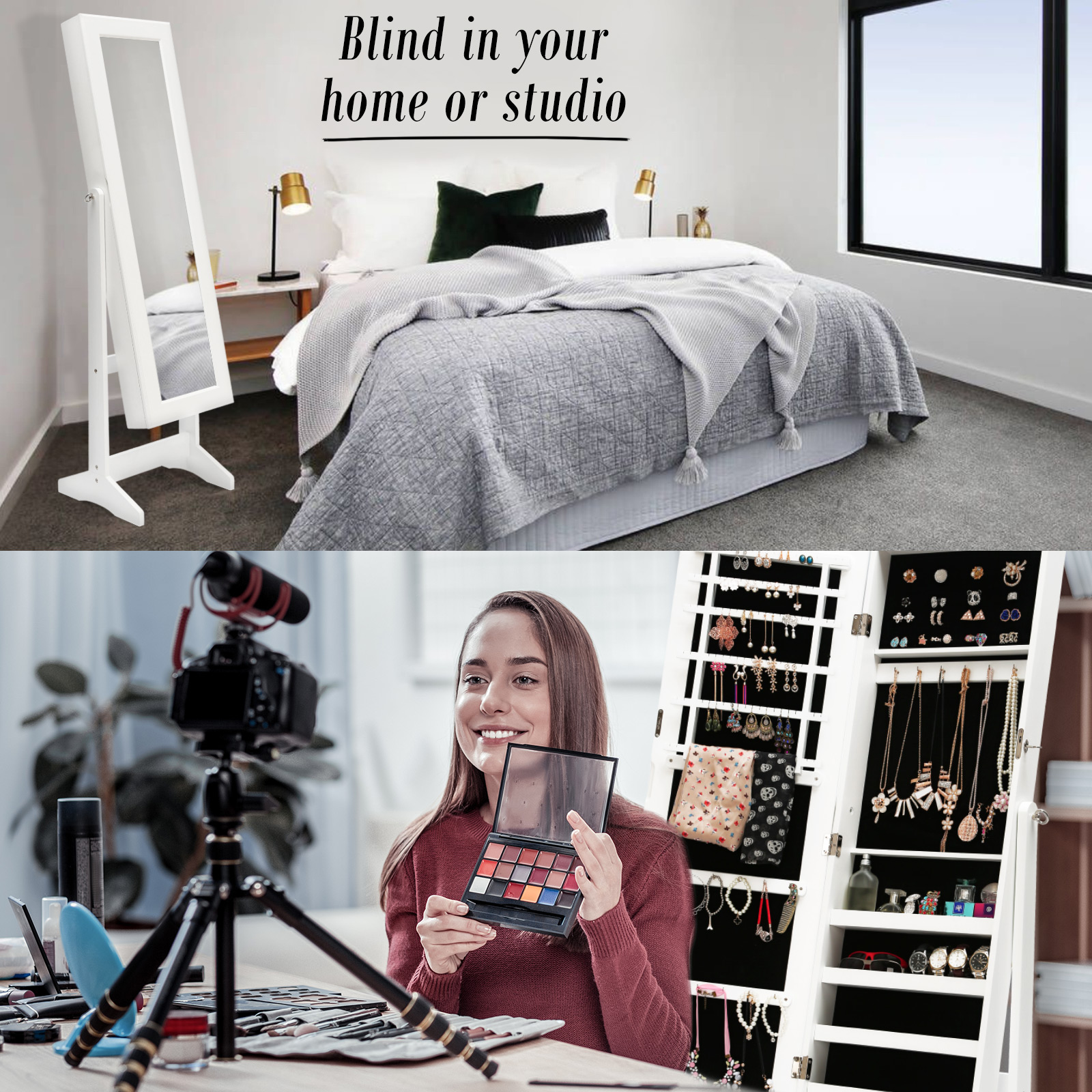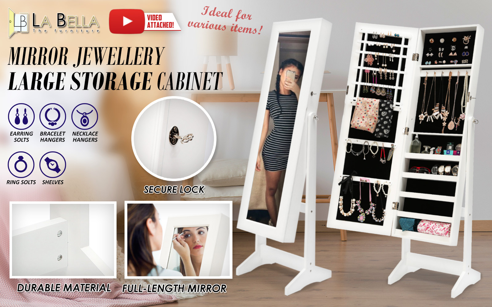 This mirror jewellery cabinet combines functionality with a sleek, modern design, providing a compact storage solution for your accessories while serving as a full-length dressing mirror. Its stylish appearance makes it suitable for various room settings, helping to keep your jewellery and space organized.
