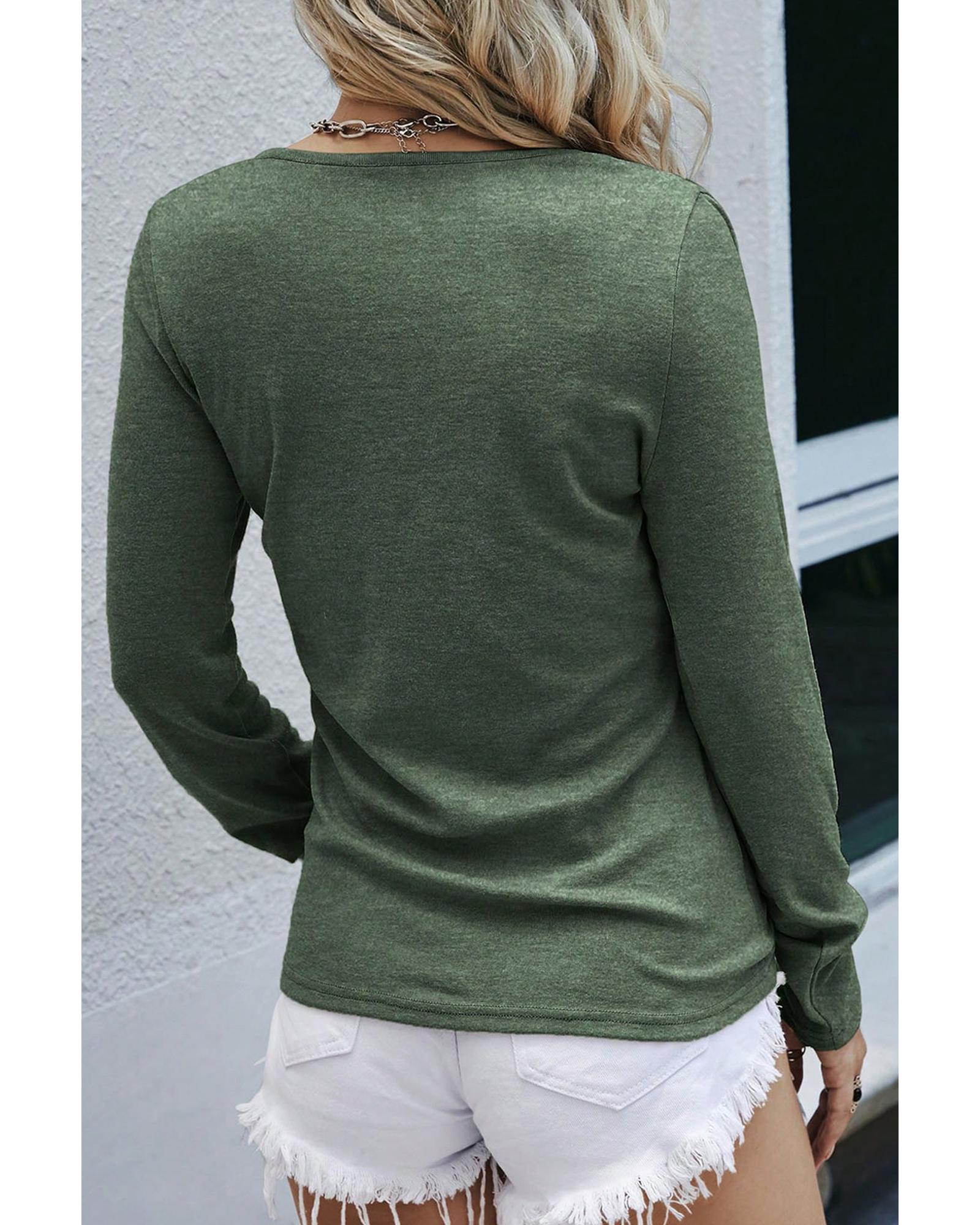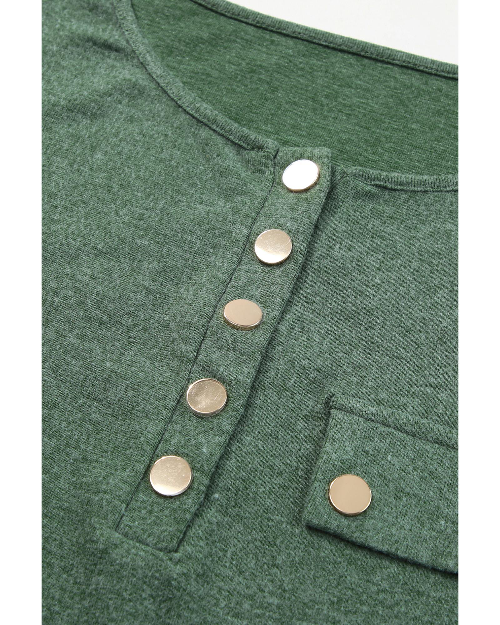 Mist Green Long Sleeve Snap Button Henley Top – XL