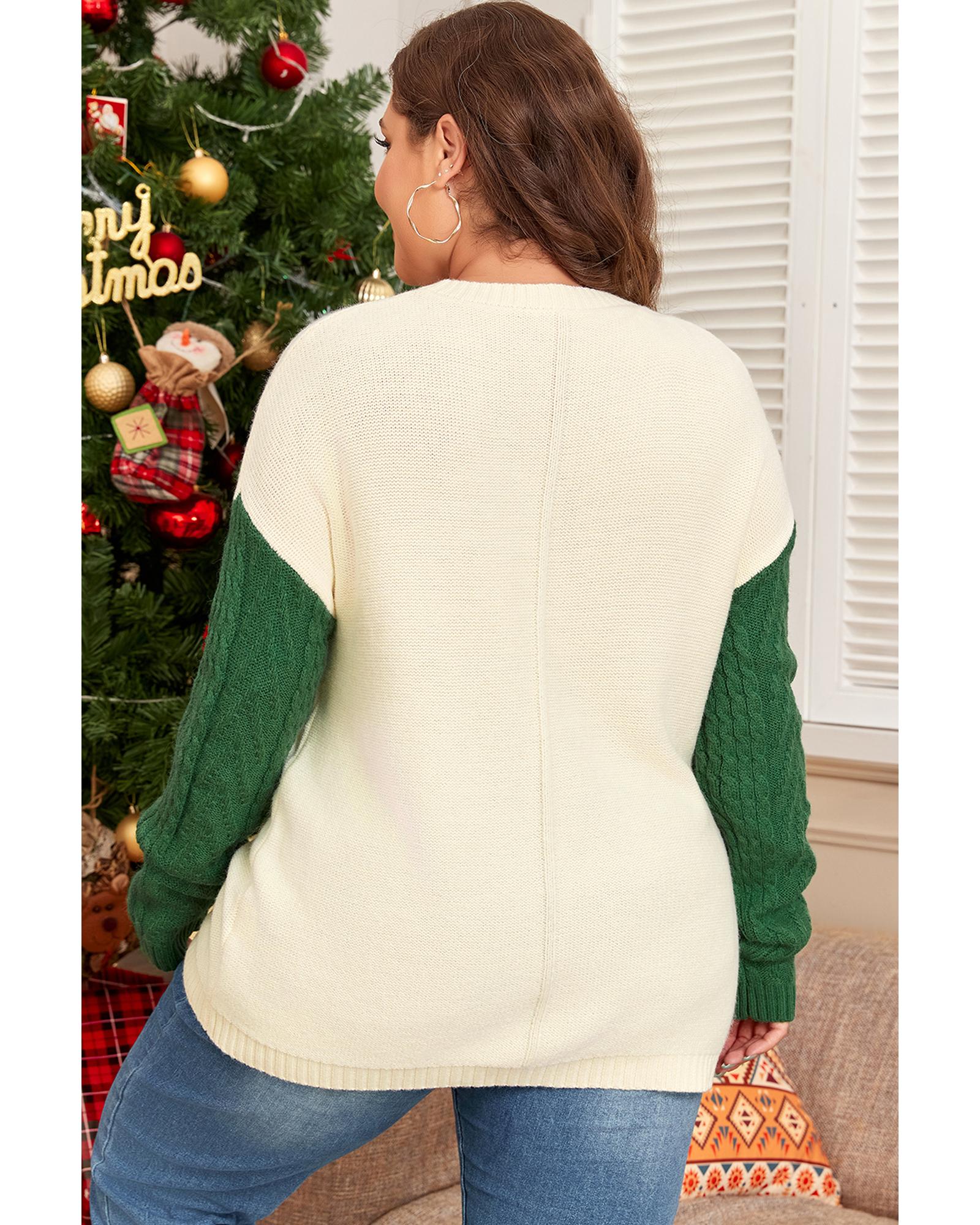 This plus size cable knit sweater features a trendy fitted design with a modern color block pattern. Its relaxed drop shoulder style and high elasticity provide a comfortable and flattering fit, making it suitable for casual and stylish wear.