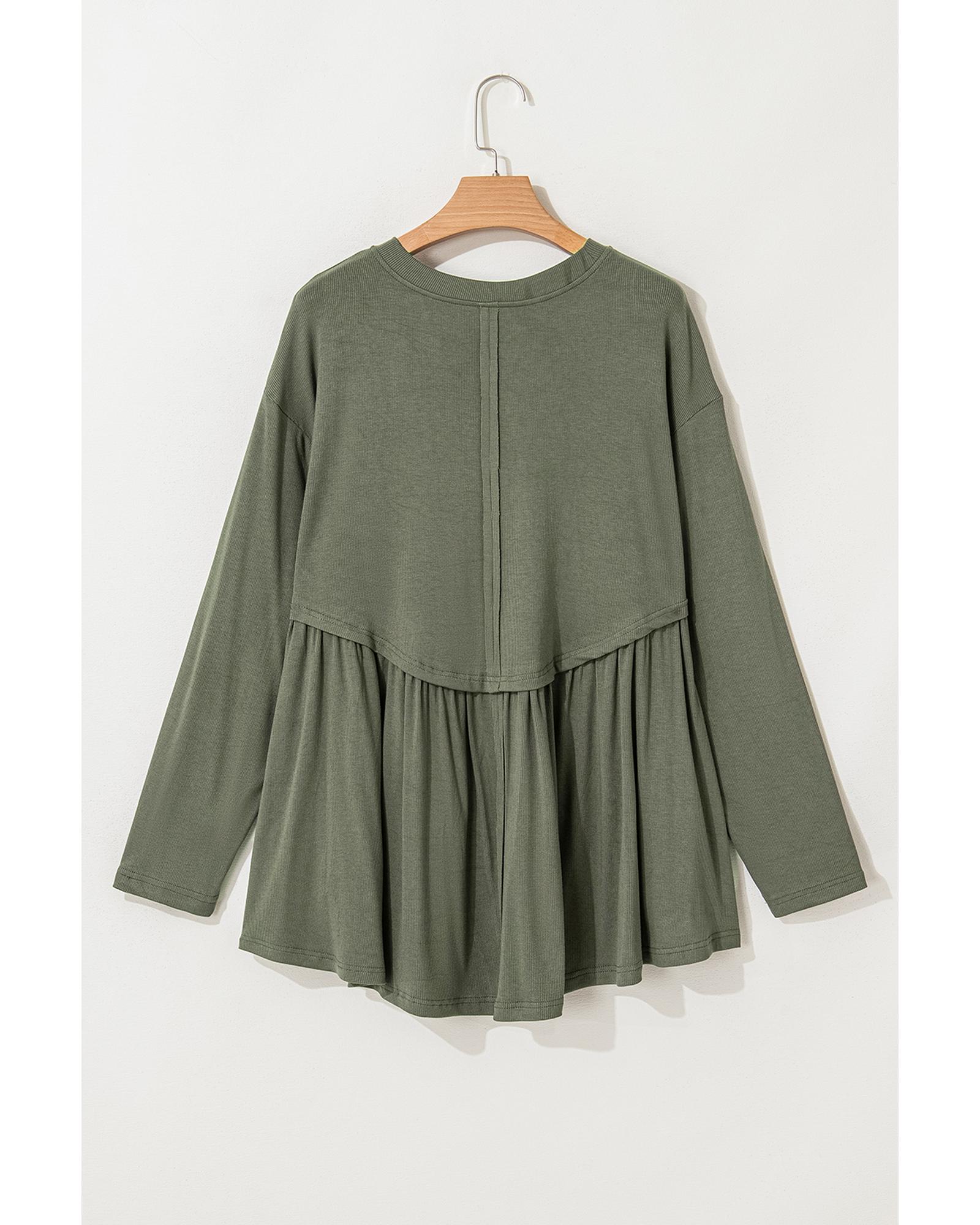 Mist Green Plus Size Thermal Knitted Babydoll Flare Top – 1X