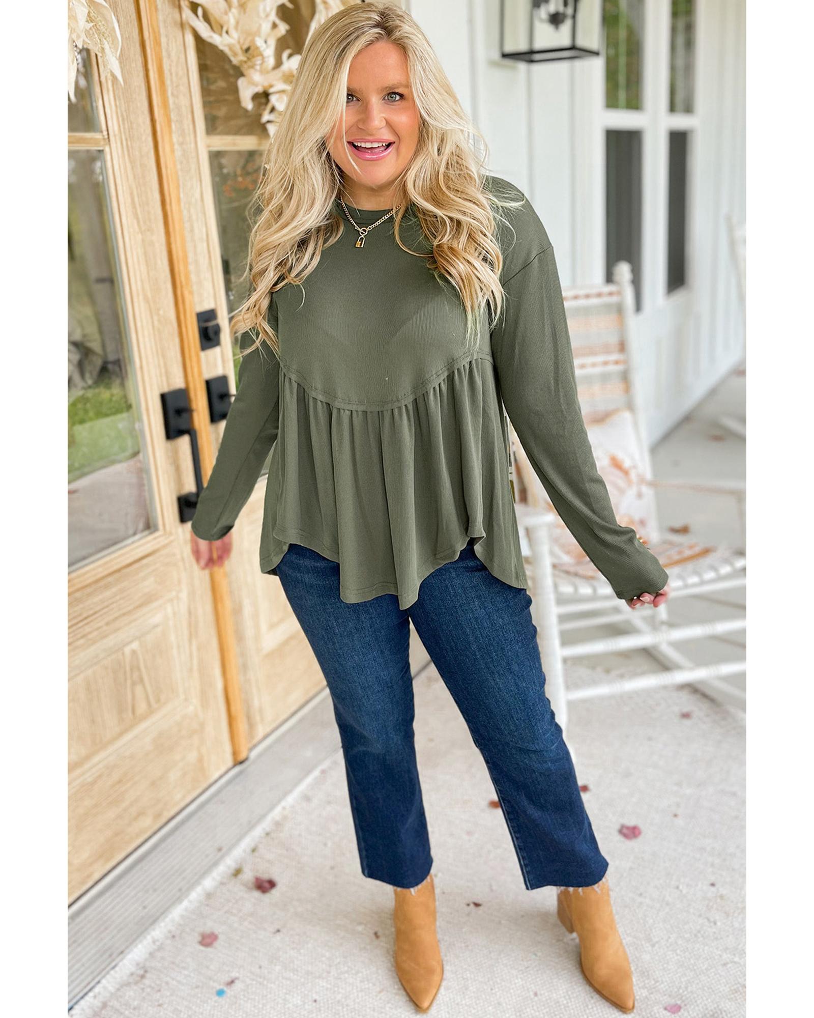 Mist Green Plus Size Thermal Knitted Babydoll Flare Top – 2X