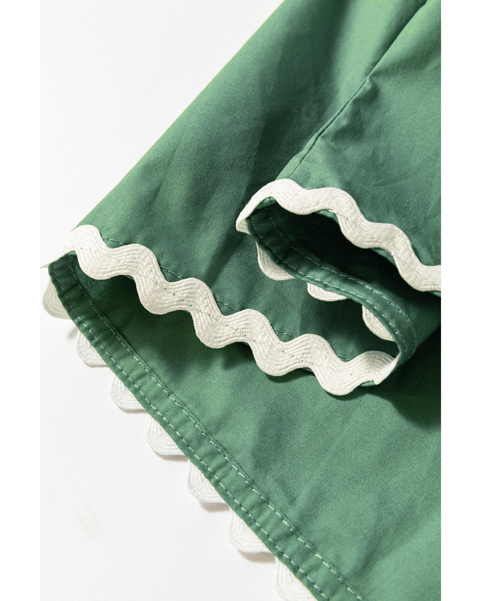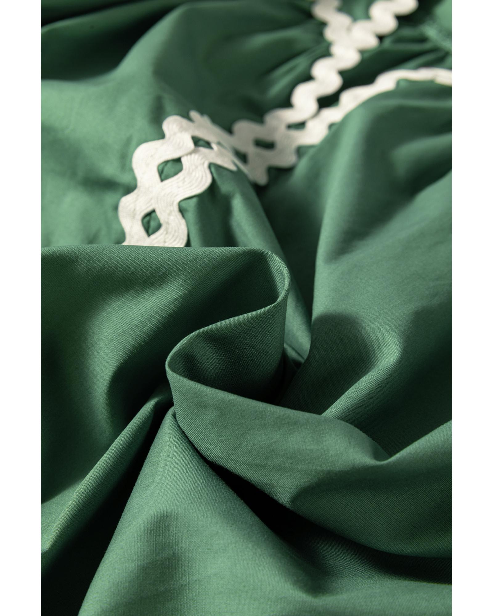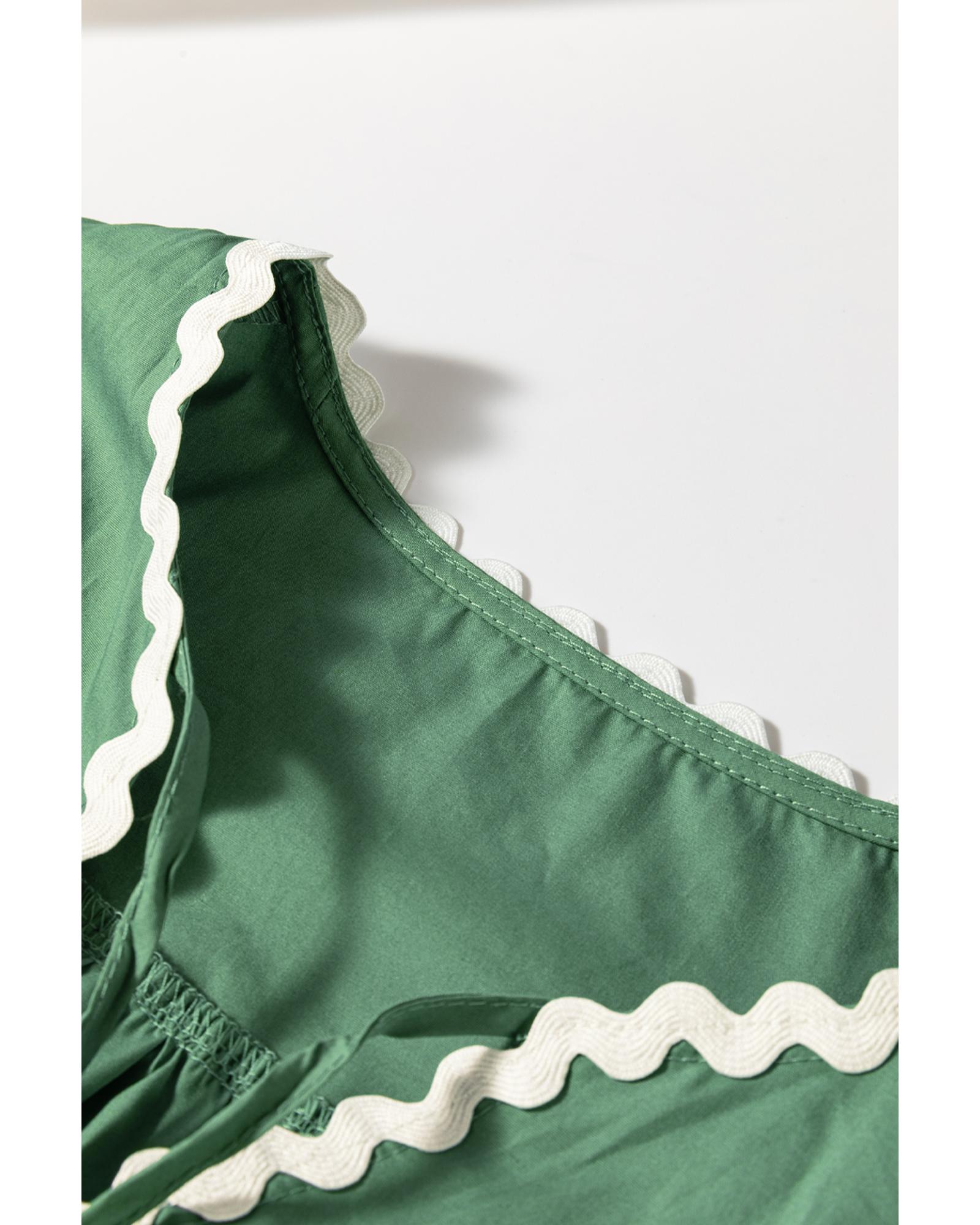 Mist Green Ric Rac Trim Tie Split Neck Short Sleeve Blouse – M