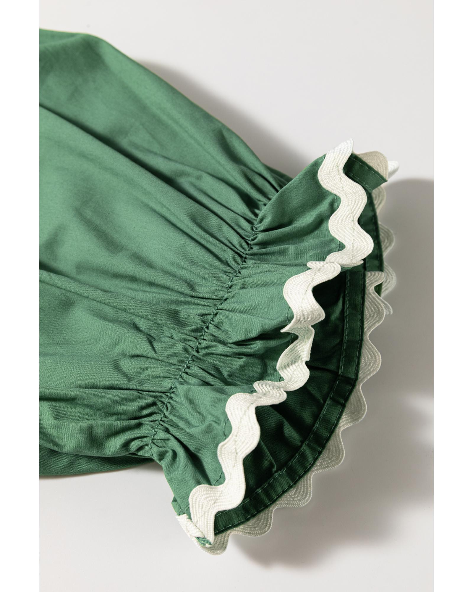 This blouse features a charming design with playful details and a comfortable fit. Crafted from lightweight cotton, it offers breathability and ease of wear, making it suitable for warm weather and casual occasions.