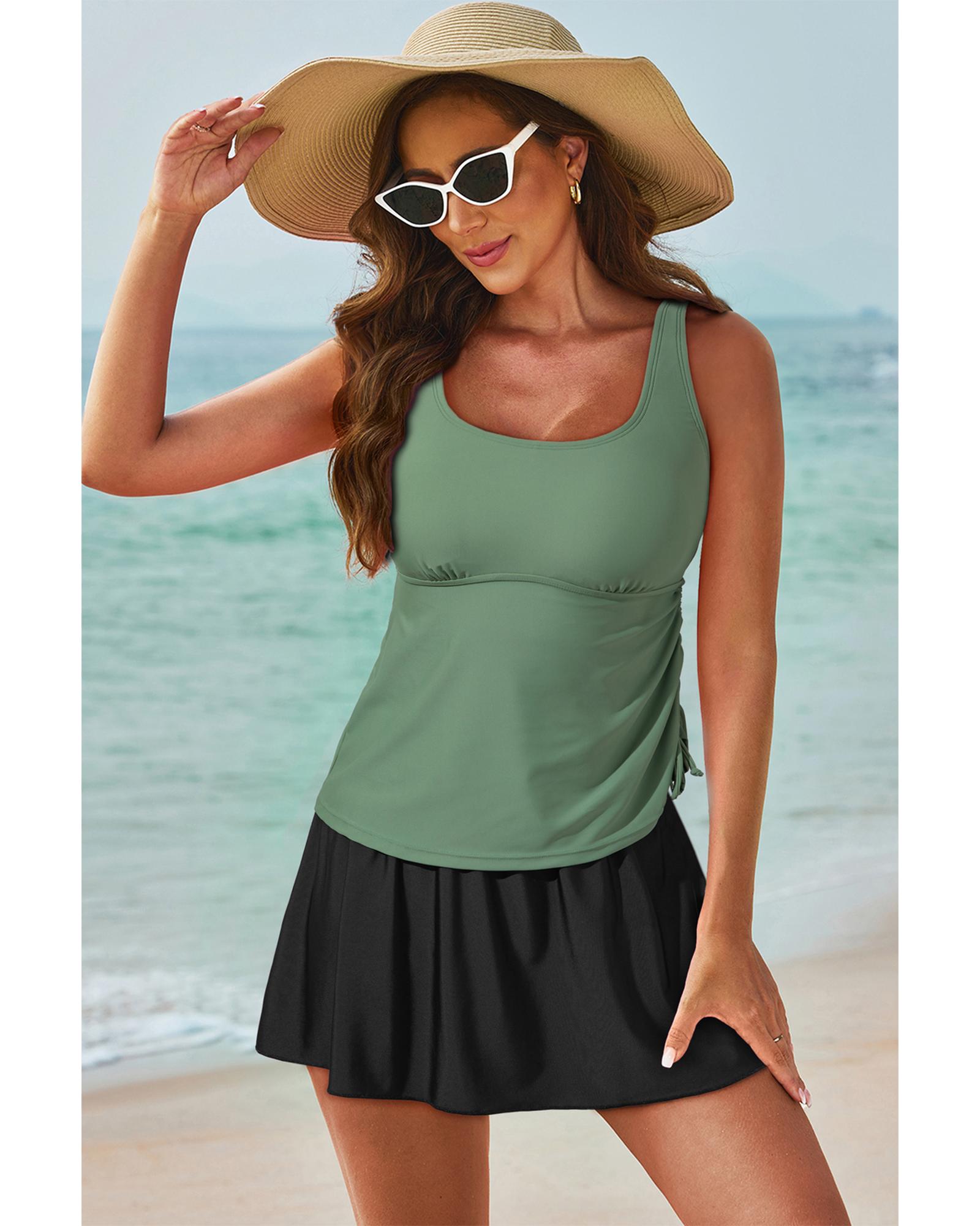Mist Green Scoop Neck Adjustable Tankini and Matching Skort Bathing Suit – L