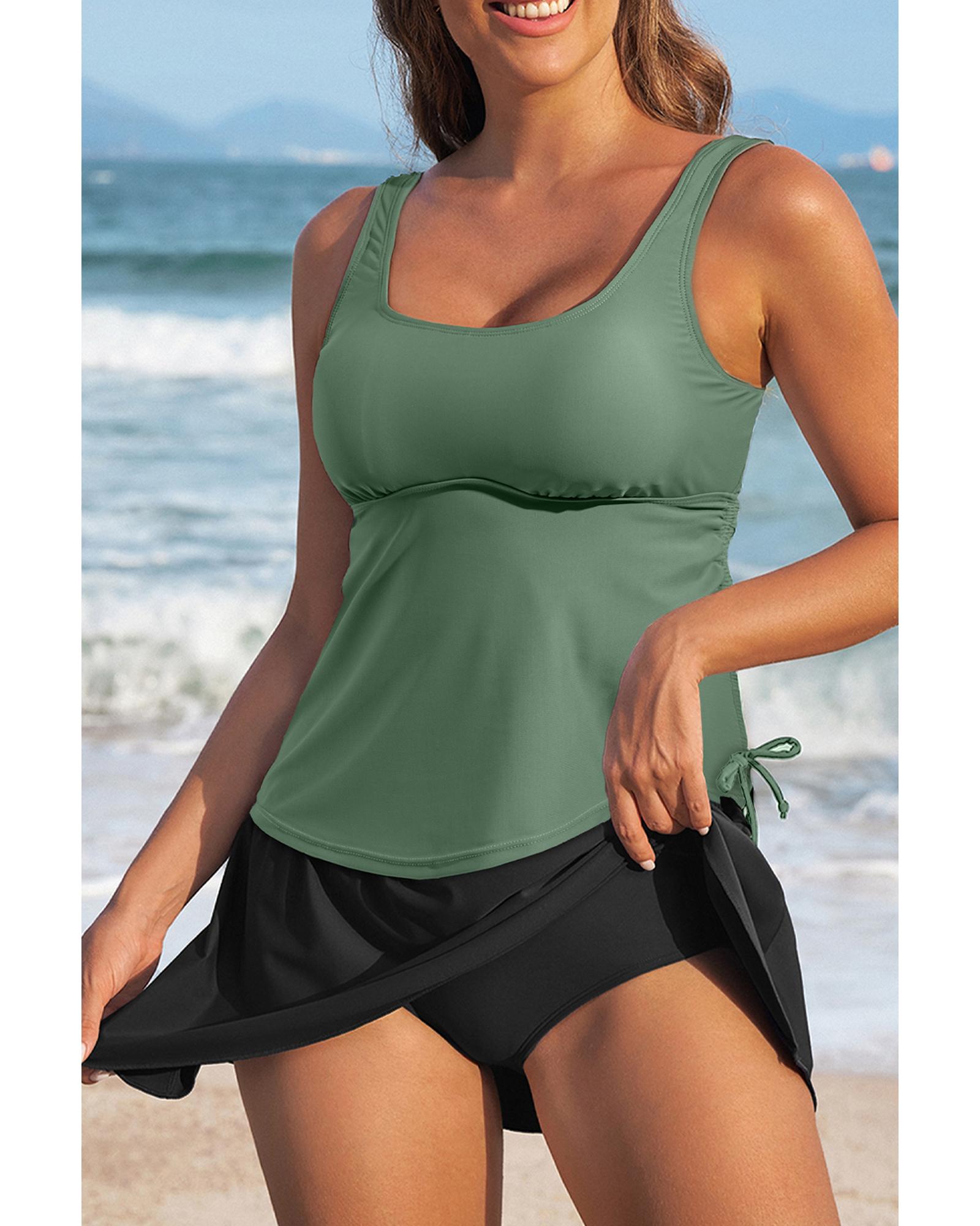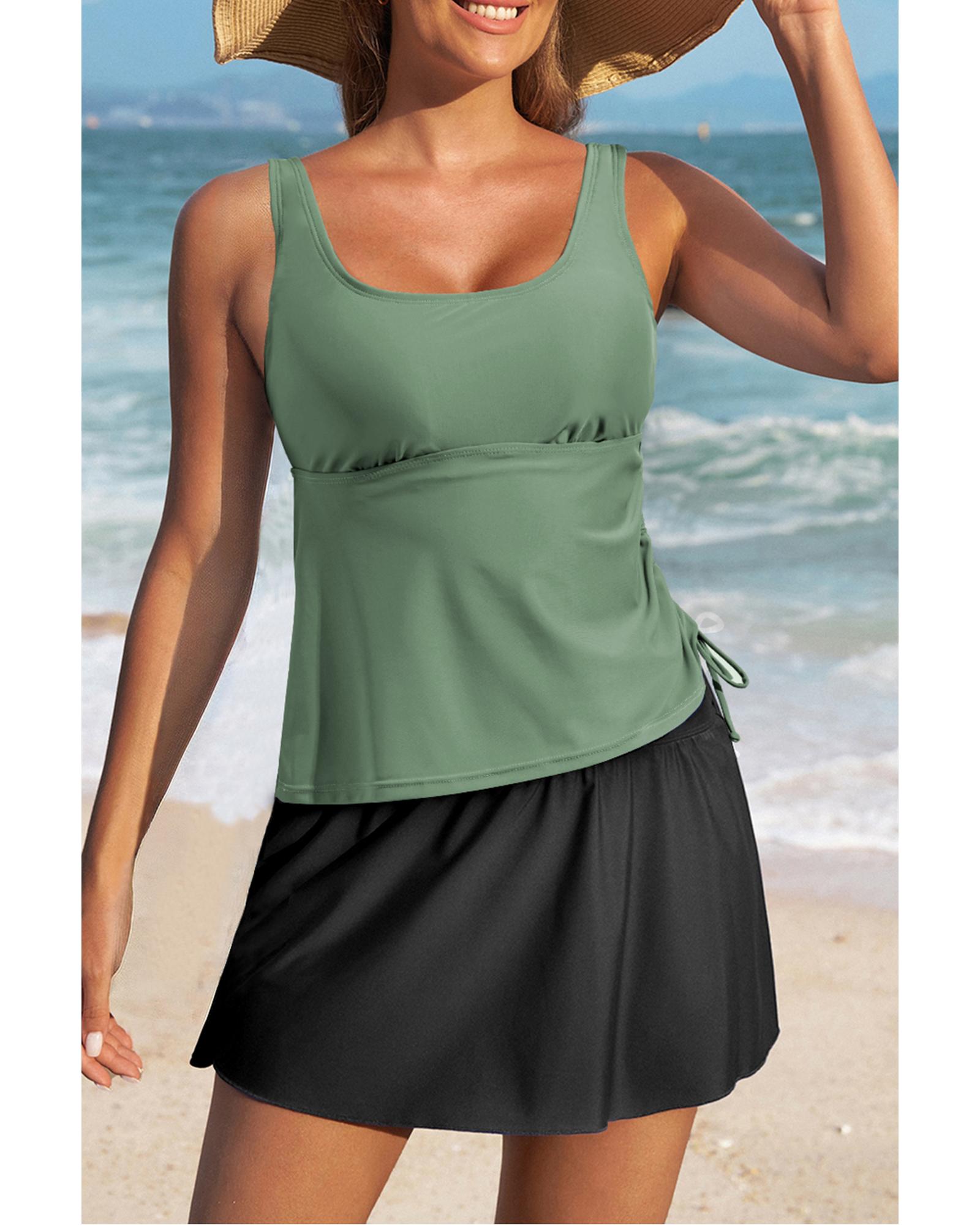 Mist Green Scoop Neck Adjustable Tankini and Matching Skort Bathing Suit – M