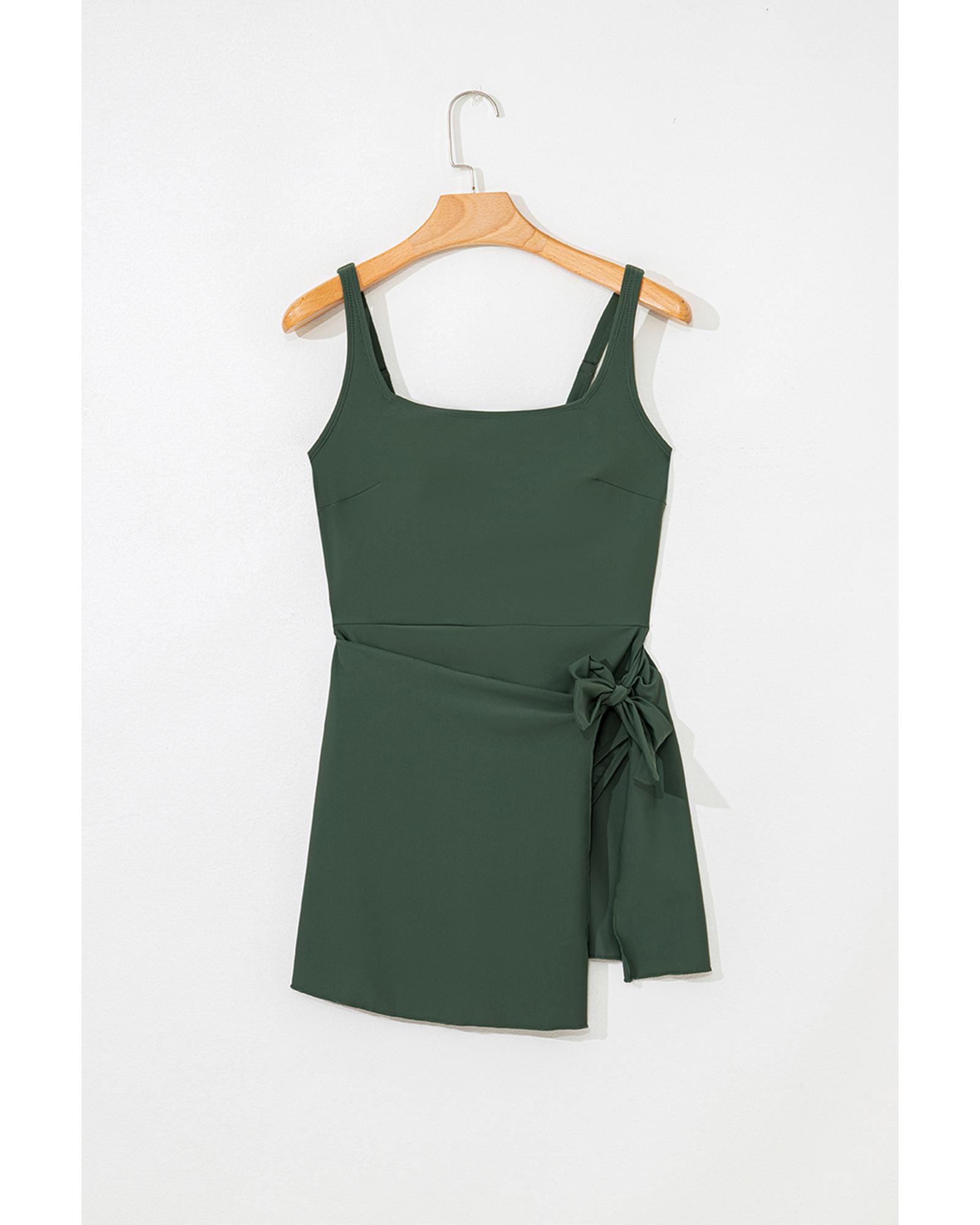 Mist Green Side Tied Waist Square Neck Adjustable Straps A-line One Piece Swim Dress – 2XL