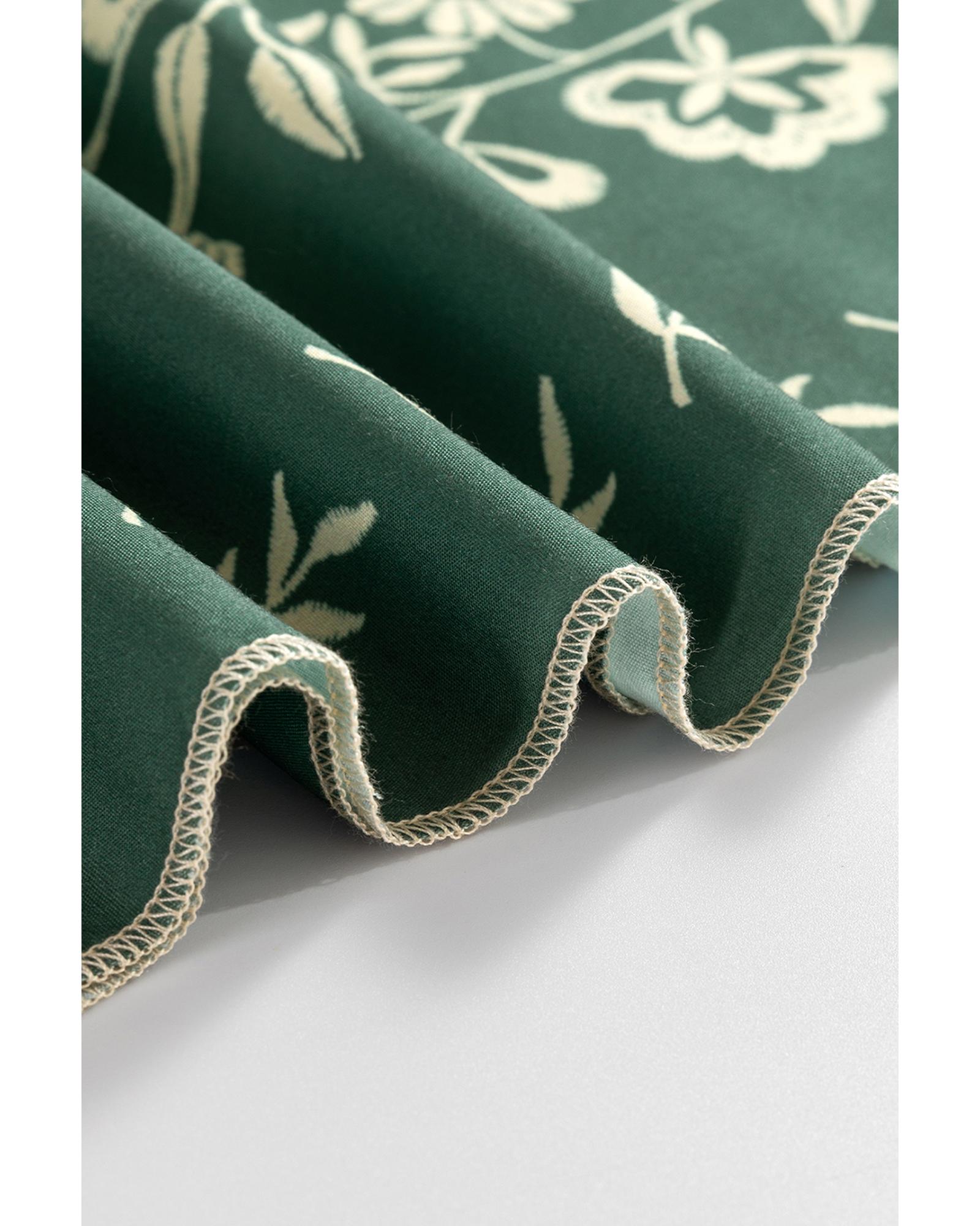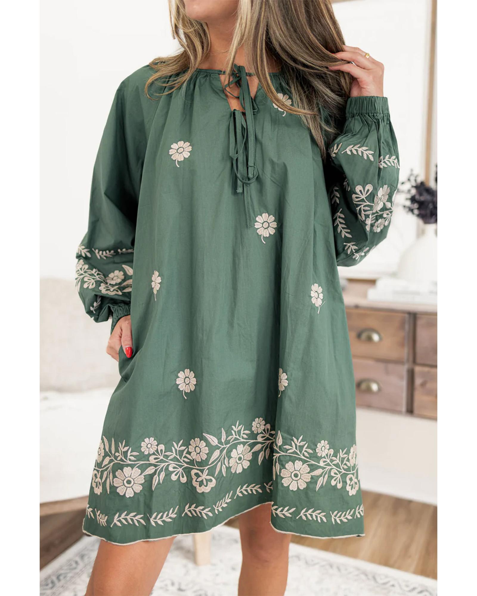 Mist Green Tie Neck Boho Floral Pattern Puff Sleeve Shift Dress – XL