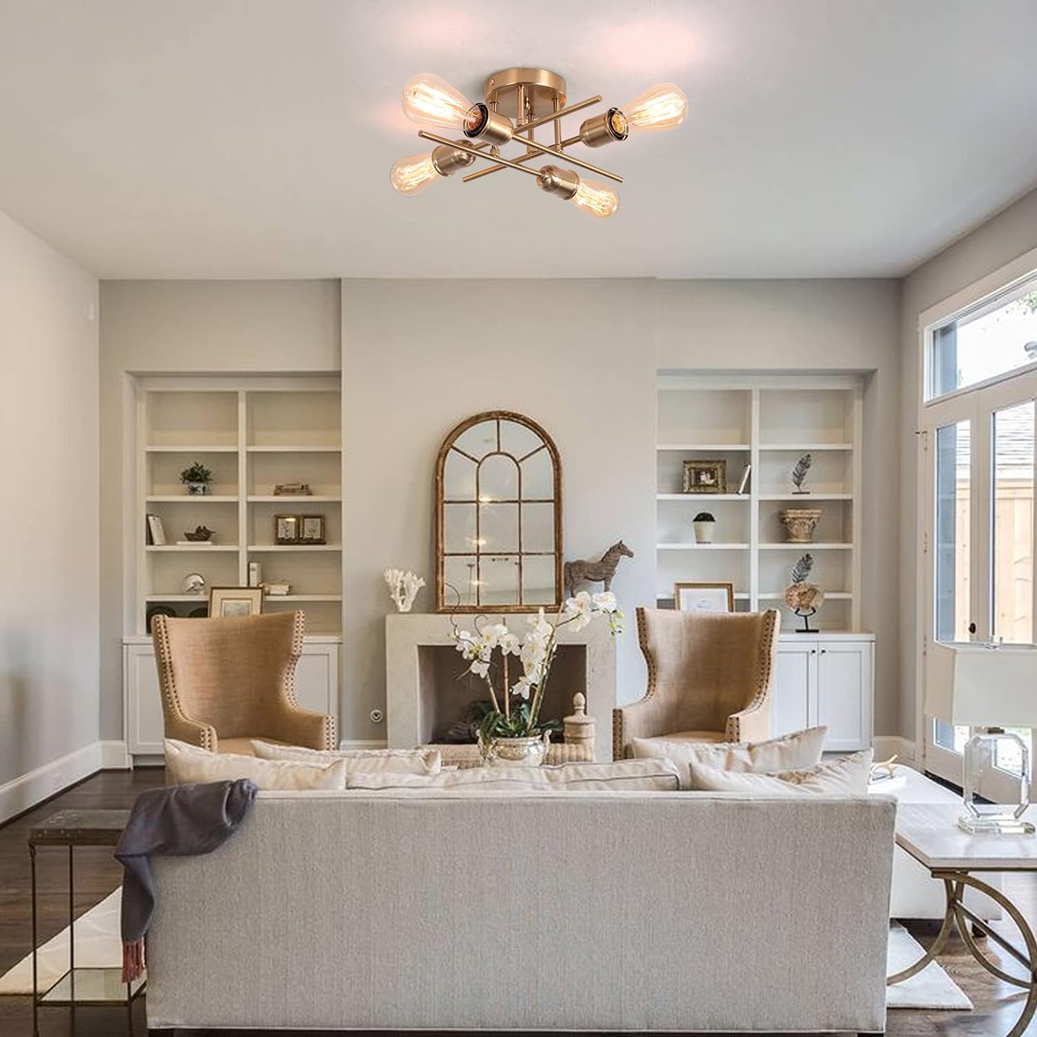 • Features four multi-directional lamp bases for versatile lighting.