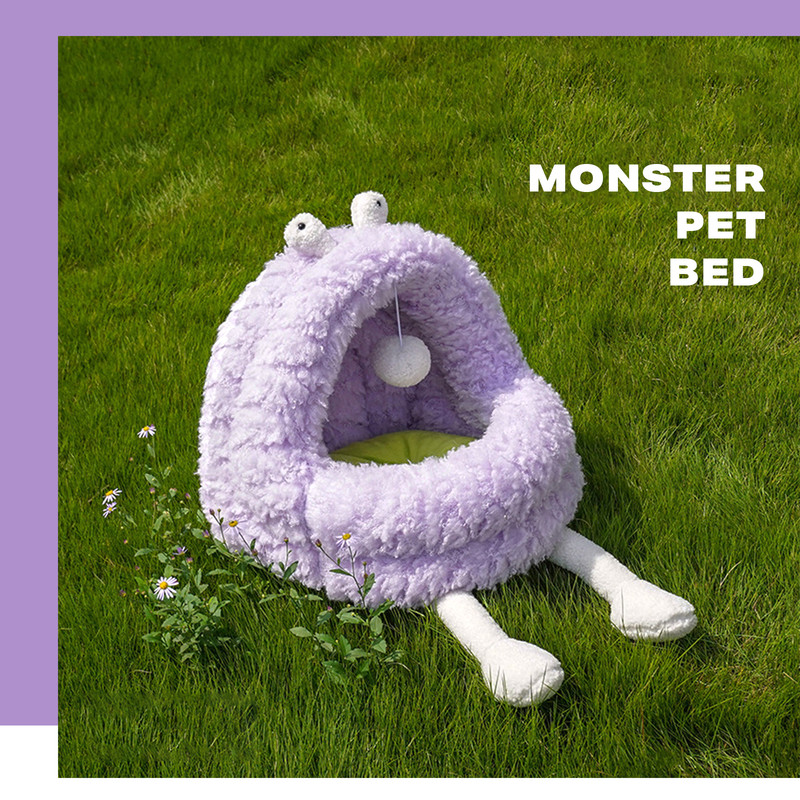 Monster Dog Cat Pet Calming Bed Warm Soft Plush Nest Comfy Sleeping Kennel Cave