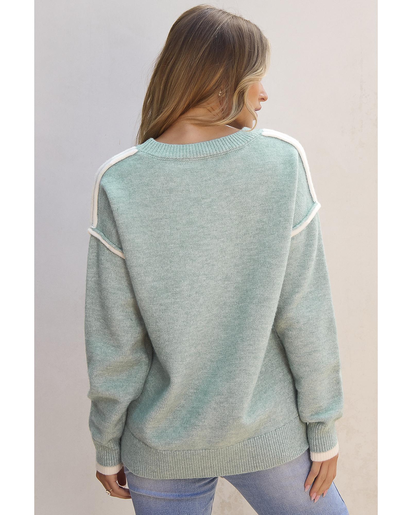 Moonlight Jade Colorblock Contrasting Edge Crewneck Sweater – L