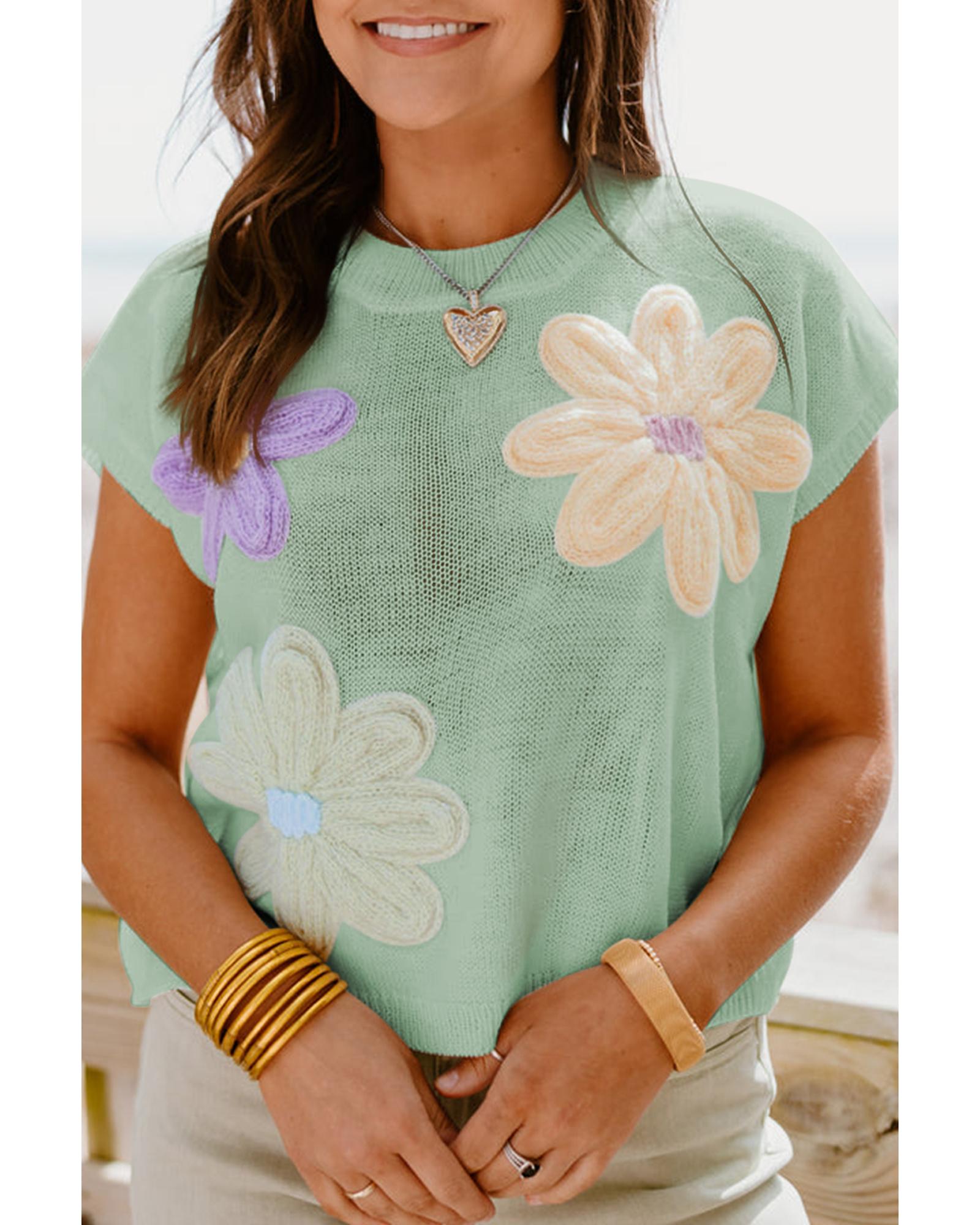 - 1 x Crochet Flower Knit Short Sleeve Sweater Top