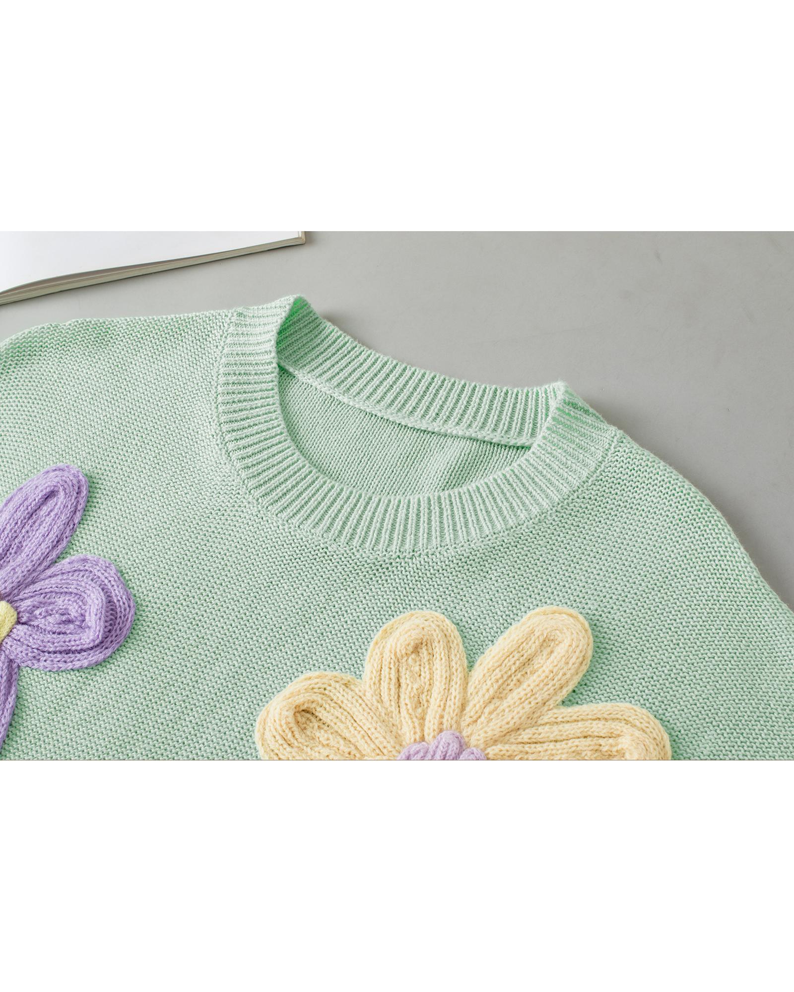 This crochet flower knit short sleeve sweater top combines trendy style with comfort. Its handmade floral details add a charming touch, making it suitable for various casual and chic occasions. Crafted from soft, breathable cotton, it offers a comfortable fit and stylish appearance.