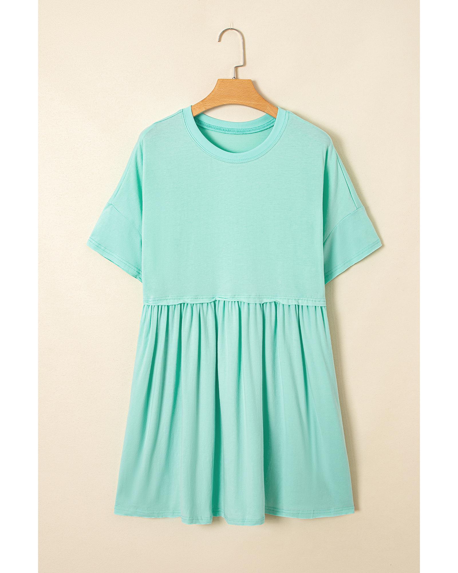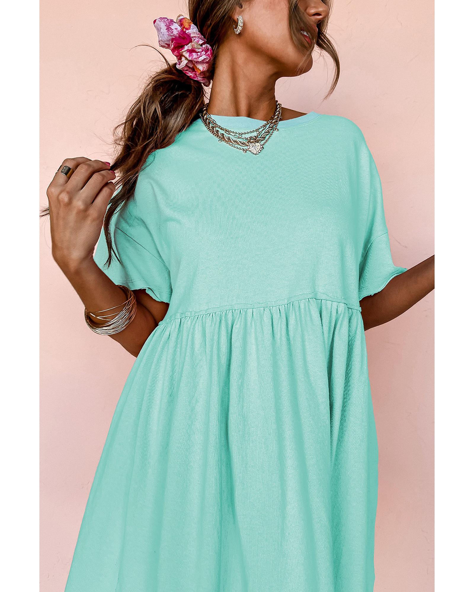 Moonlight Jade Solid Color Pocketed Raw Edge Babydoll Dress – M