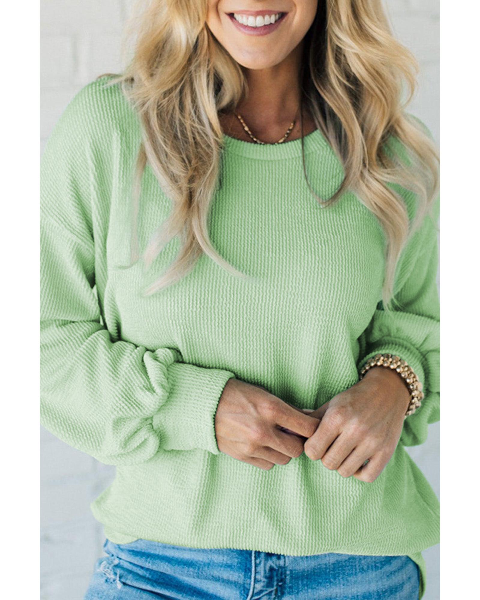 Moonlight Jade Solid Cord Ribbed Drop Shoulder Pullover Top – S