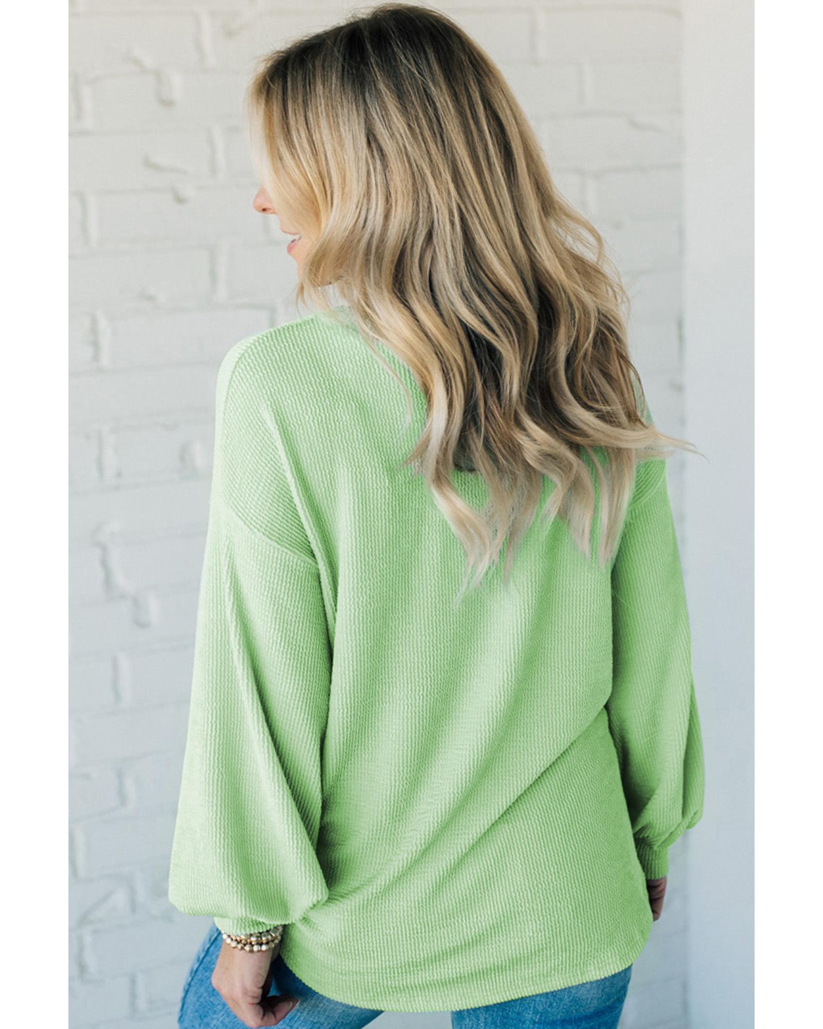 Moonlight Jade Solid Cord Ribbed Drop Shoulder Pullover Top – XL