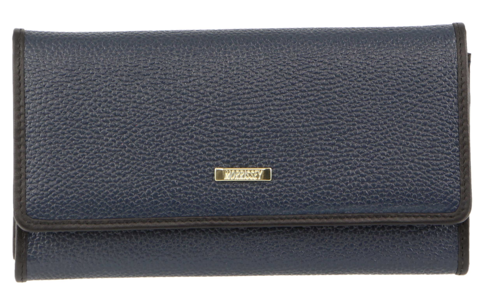 Morrissey Italian Structured Leather Flap Over Ladies Wallet – Navy