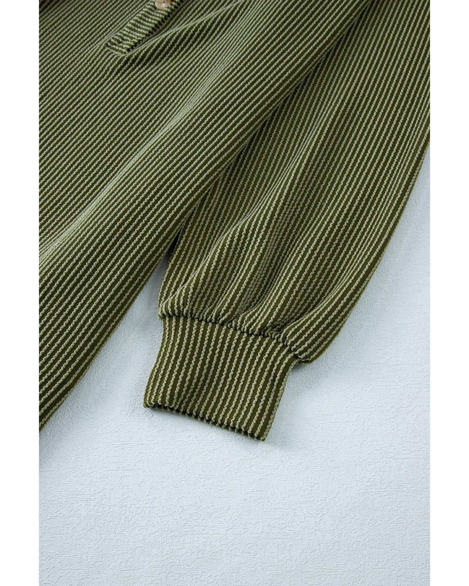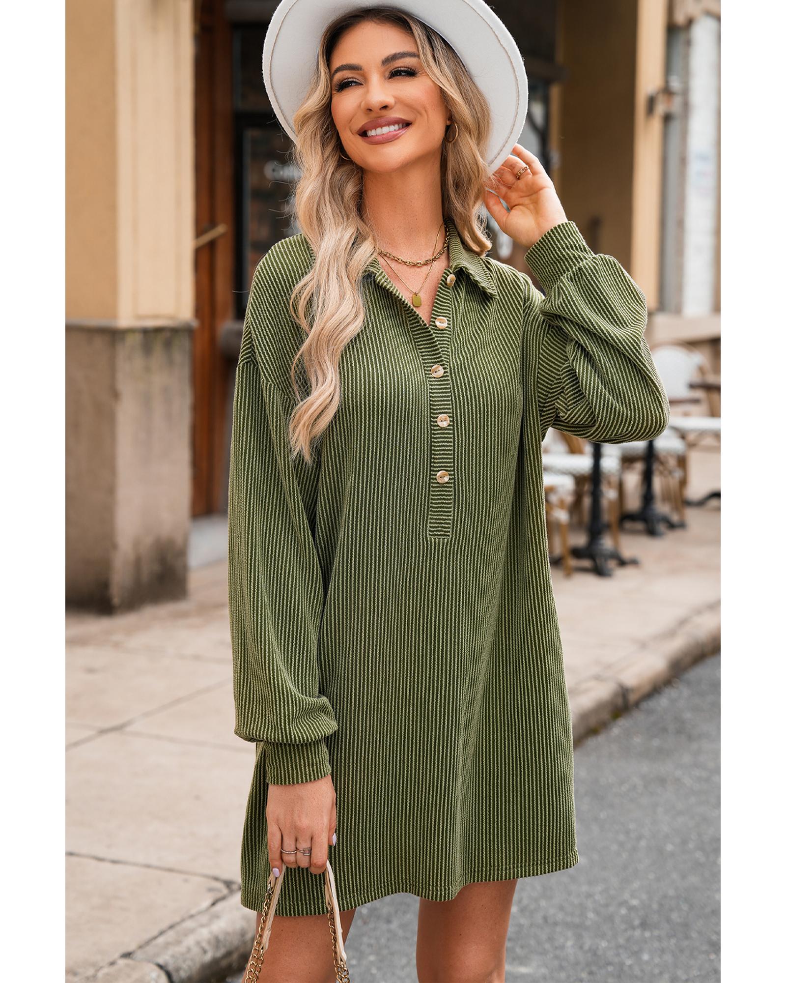 Moss Green Corded Buttons Placket Drop Shoulder Collared Shift Dress – L