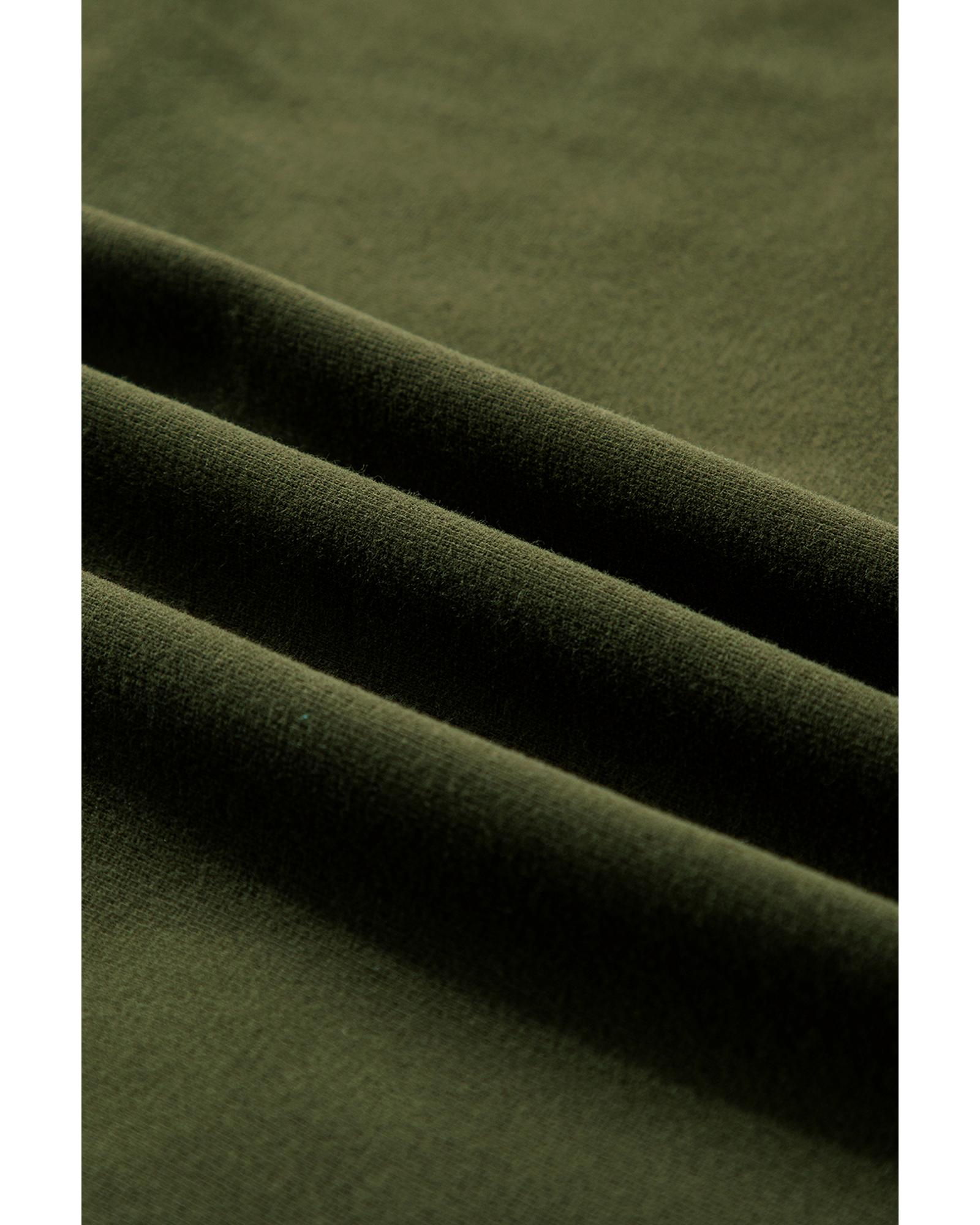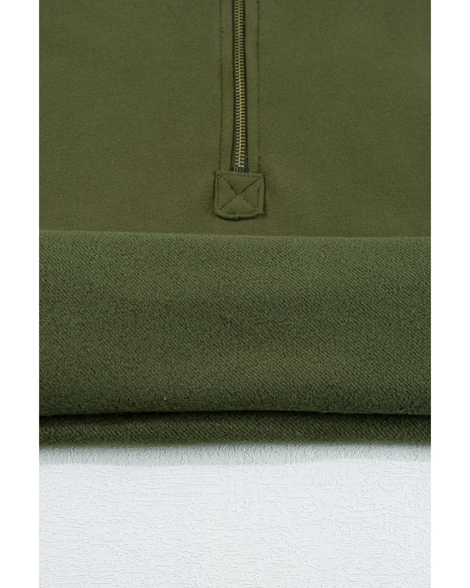 This moss green fleece-lined hoodie features a relaxed fit with a half zipper and kangaroo pockets, offering both comfort and style. Its versatile solid design makes it easy to pair with various outfits, making it suitable for casual outings or lounging.