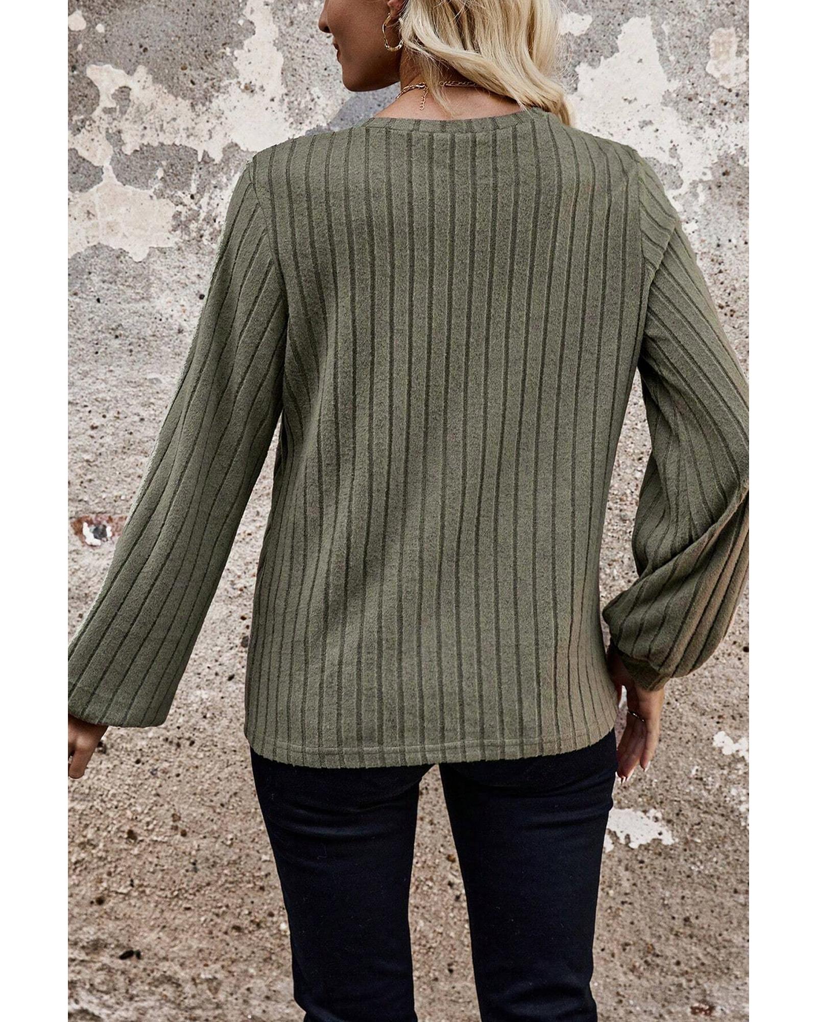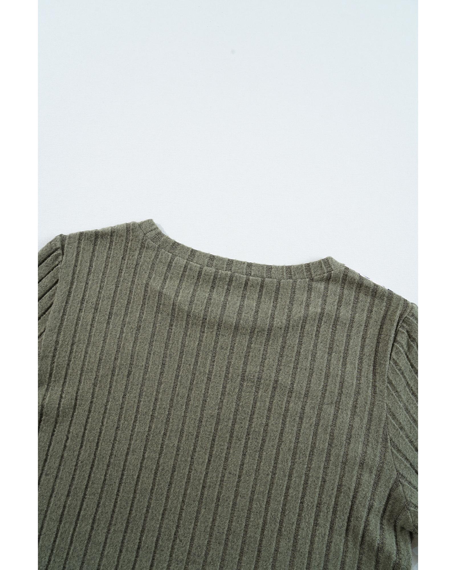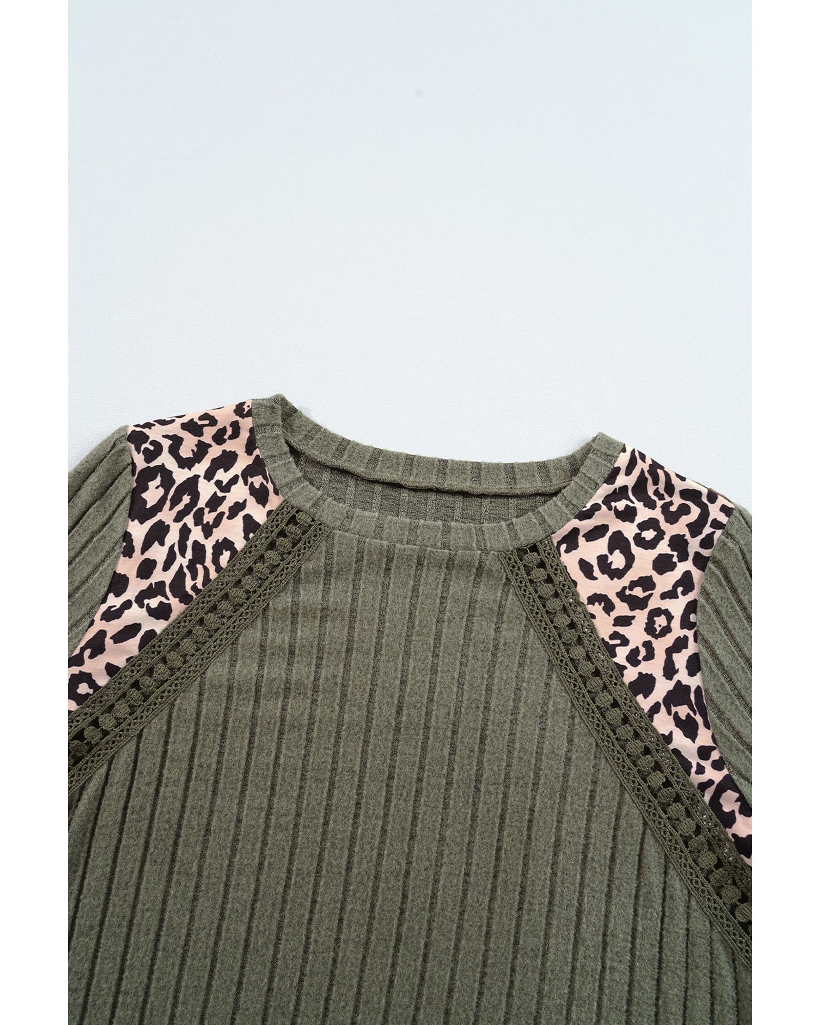 Moss Green Leopard Print Crochet Patchwork Rib Textured Knit Top – XL