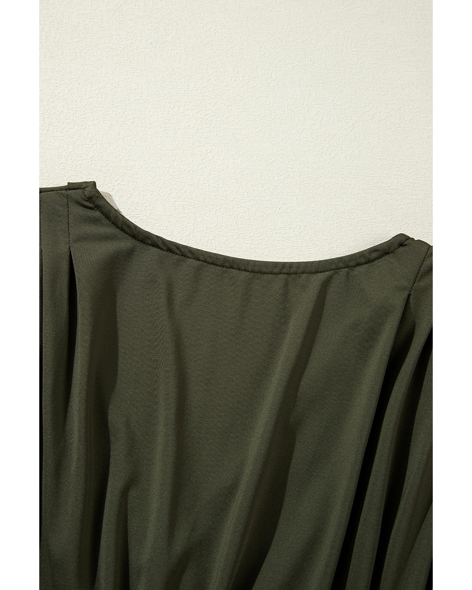 Moss Green Ruched Wrap V Neck Long Sleeve Bodysuit – XL