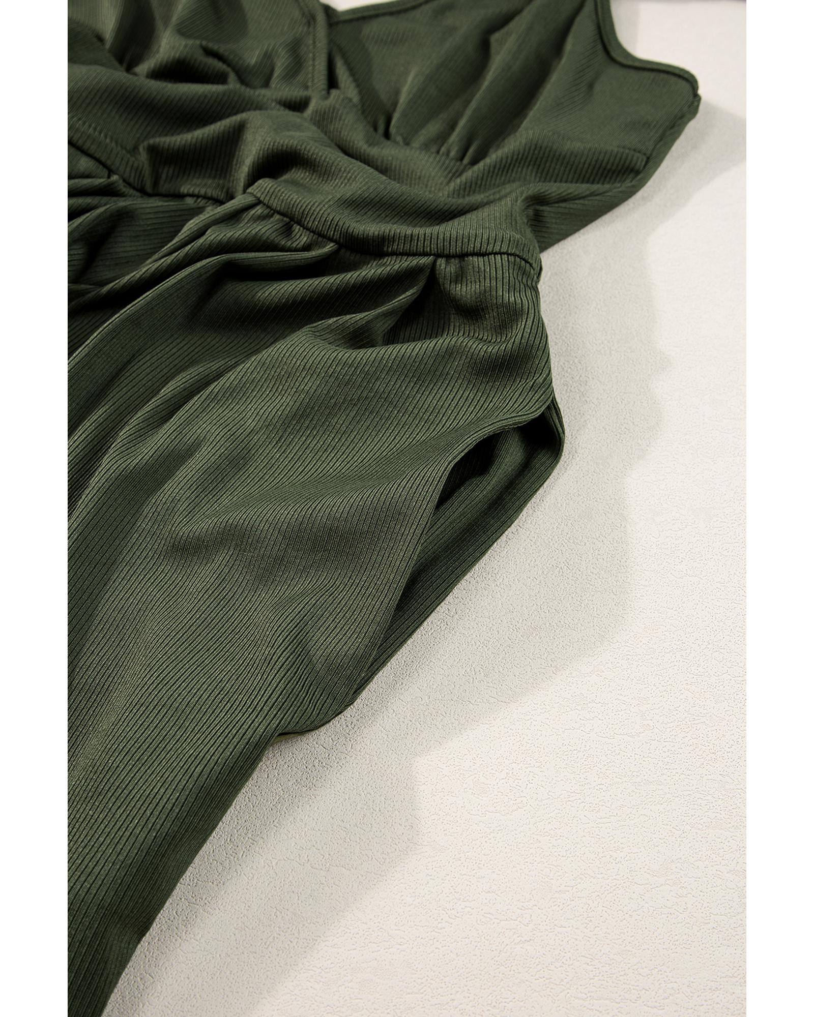 Moss Green Spaghetti Straps Cinched Waist Ribbed Romper – XL