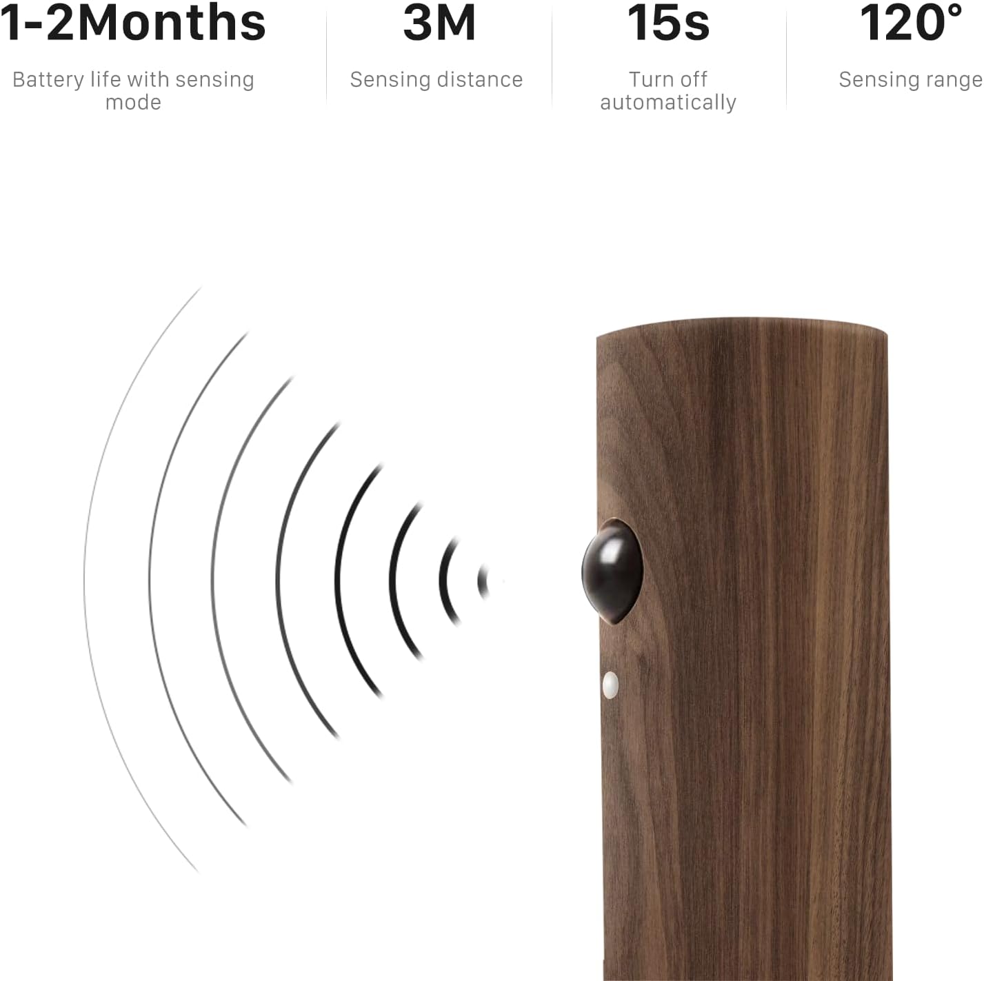 - Automatic sensing activates the light when motion is detected within a 3-meter range and a 120-degree angle, with a 15-second delay before turning off. It also automatically turns off in sufficient ambient light to save power.