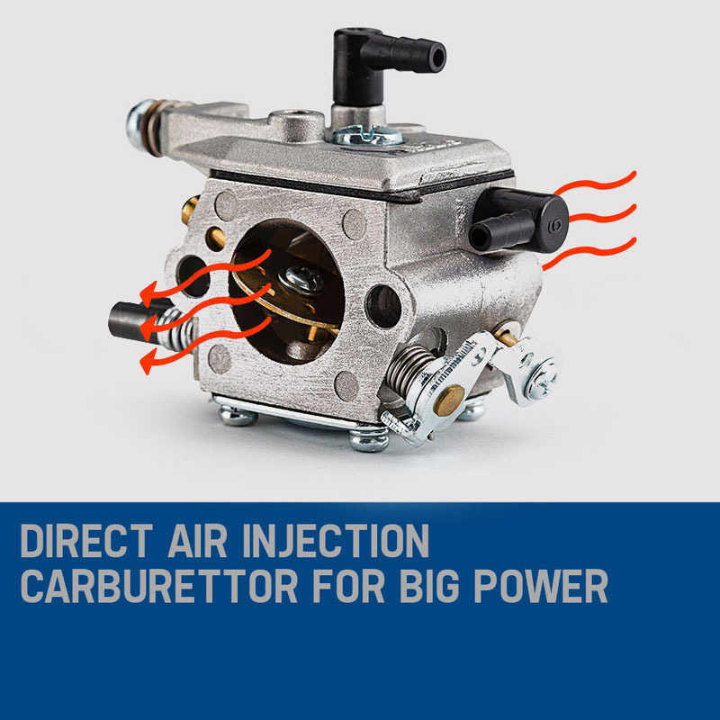 The petrol commercial chainsaw features a 22-inch bar and is designed for efficient tree pruning, firewood cutting, and tree felling. It combines powerful performance with user-friendly features, making it suitable for both professional and DIY use.