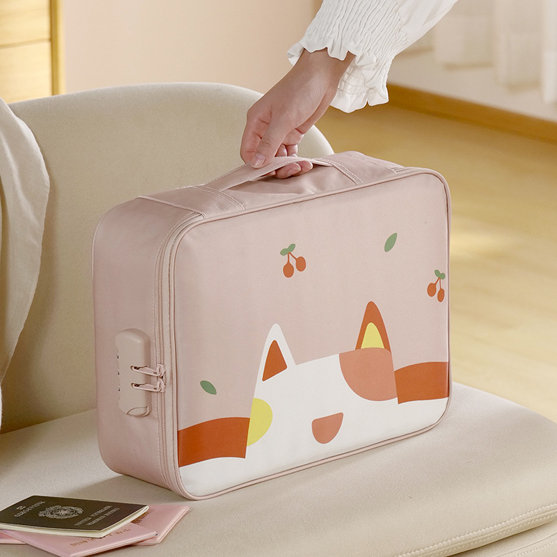 This multi-functional document and certificate organizer bag offers large capacity storage with a secure combination lock. It is designed to keep important documents, certificates, passports, cards, and valuables safe and well-organized. The bag features multiple compartments and pockets, including dedicated slots for large certificates, visible mesh pockets, and multiple card slots. Its durable construction and portable handle make it suitable for home, office, or travel use.