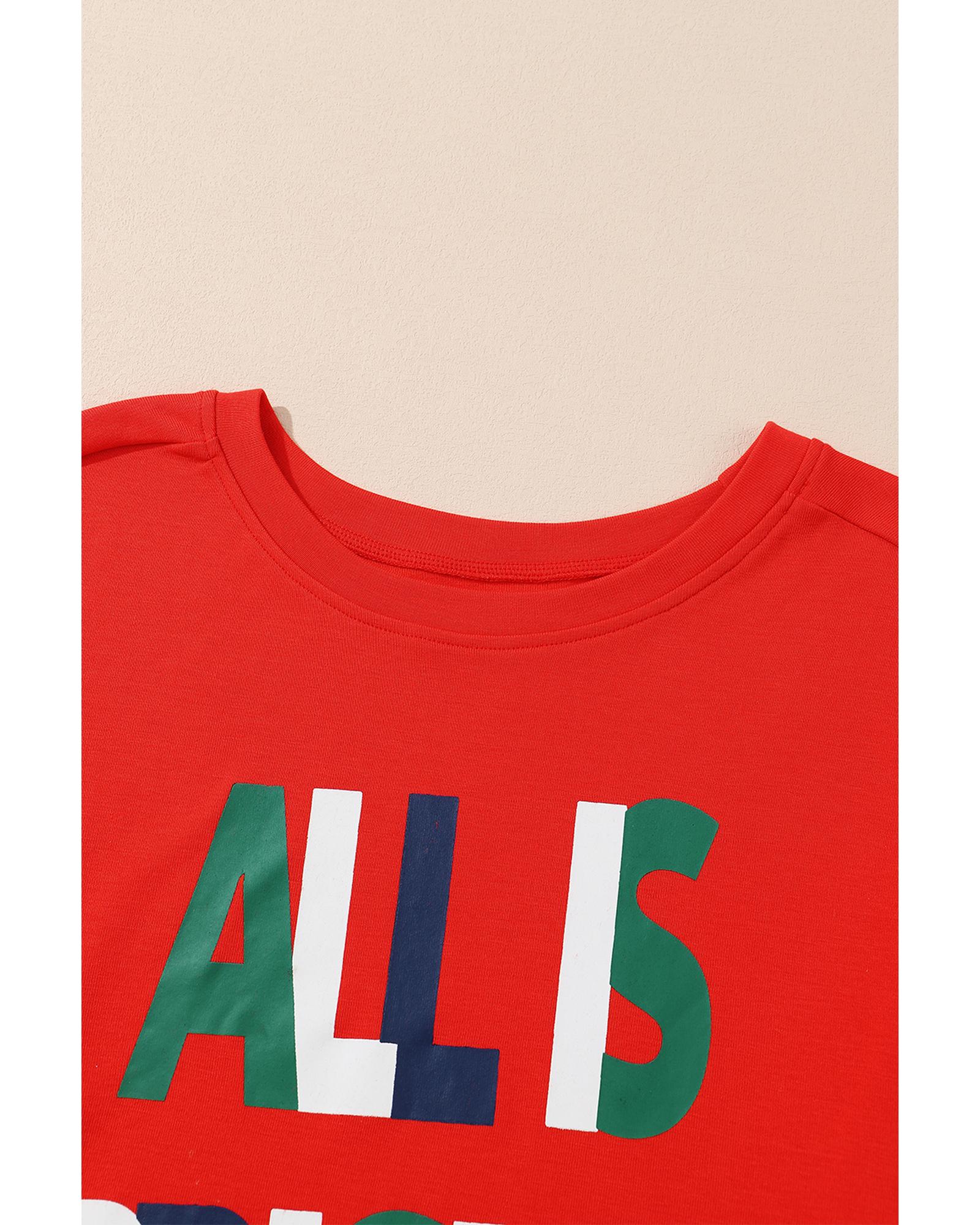 Multicolor ALL IS BRIGHT Graphic Christmas Plaid Pajamas Set – L