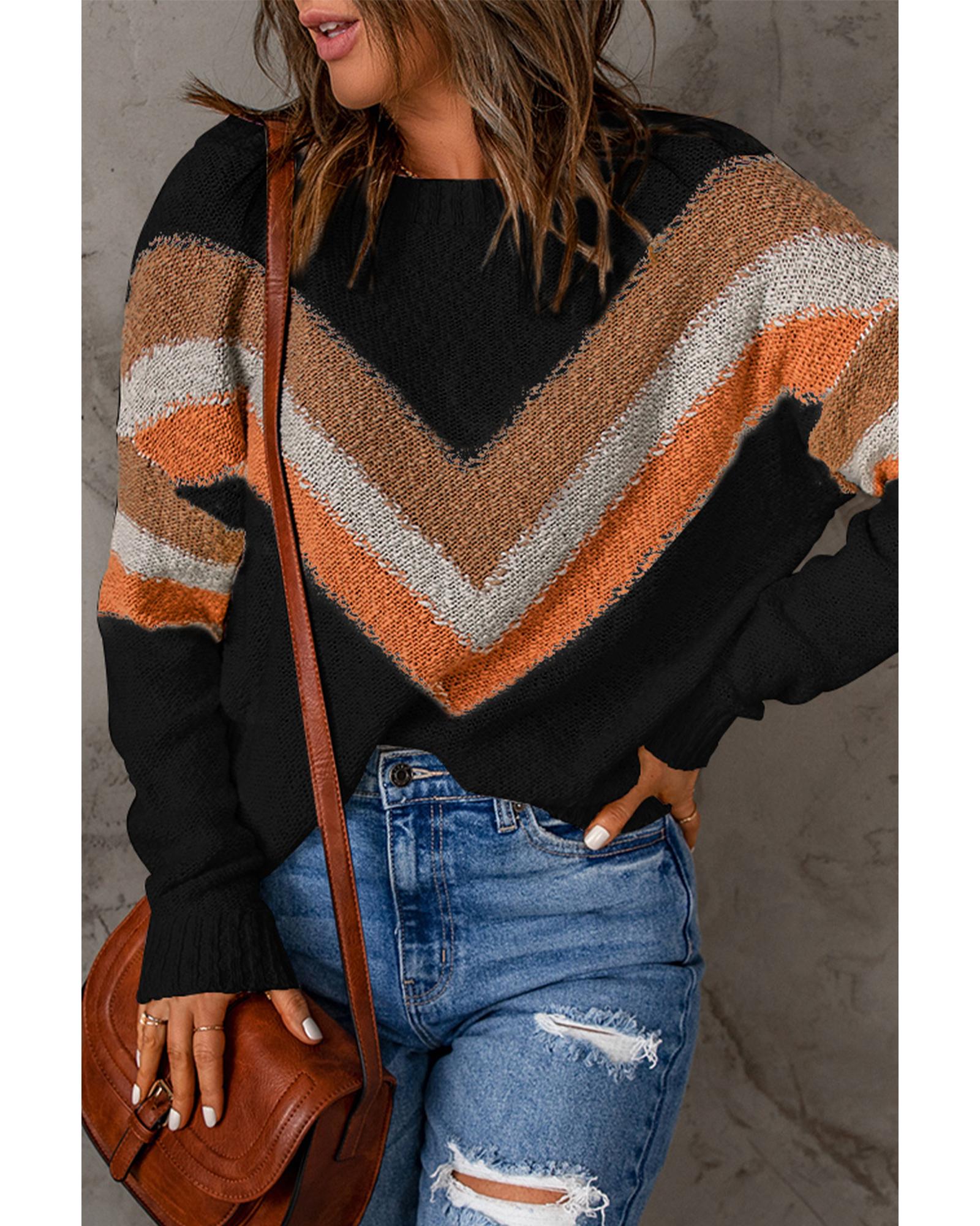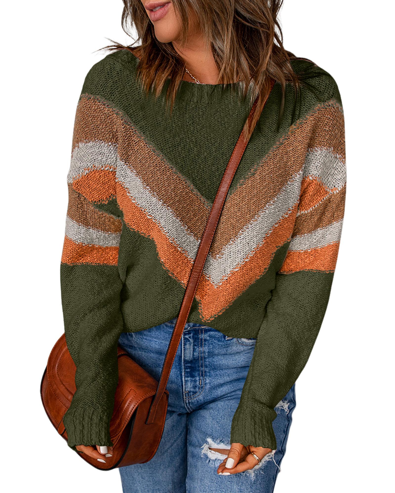 Multicolor Chevron Striped Drop Shoulder Sweater – L