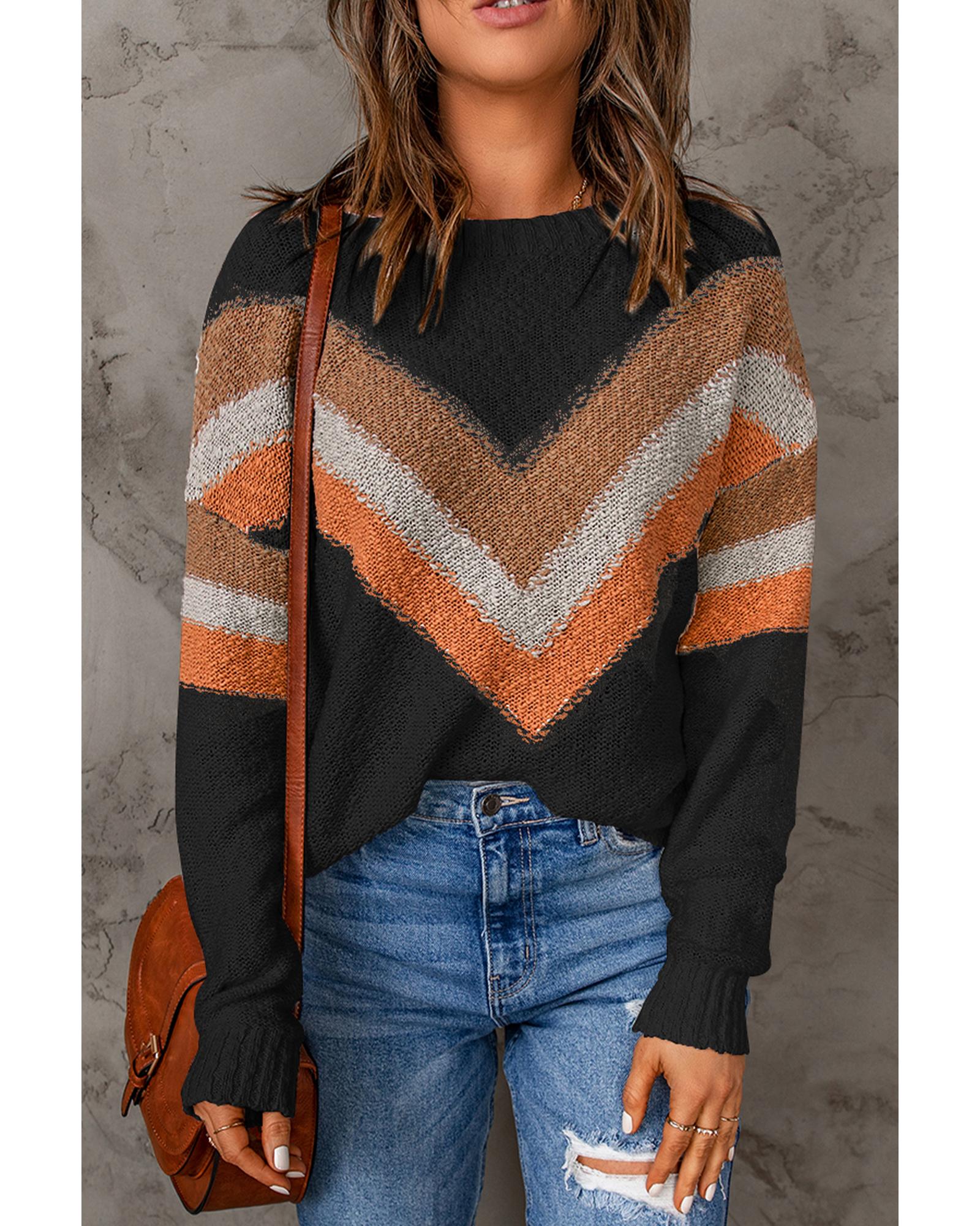 Multicolor Chevron Striped Drop Shoulder Sweater – XL