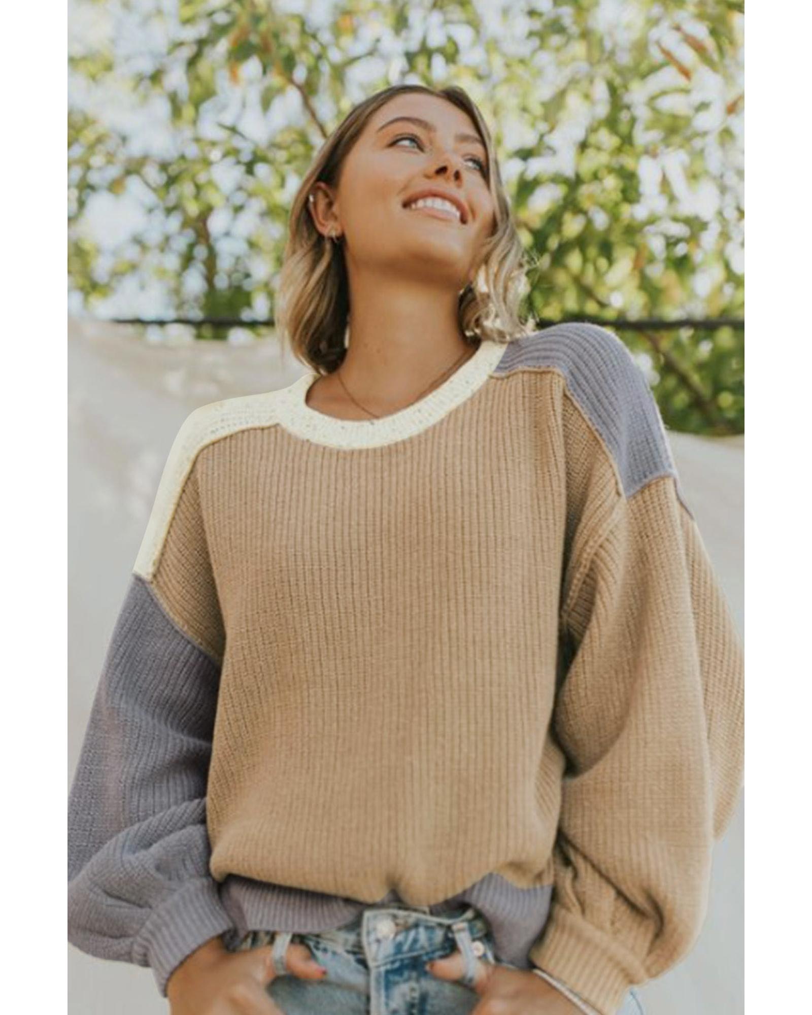 This multicolor color block patchwork baggy sweater offers a trendy and comfortable fit, perfect for cold days. Its stylish design features a color block pattern, a crew neck, and a loose fit with drop shoulders, making it suitable for various ages and body shapes. The ribbed trim ensures a comfortable fit, and it pairs well with fashion pants for a complete look.