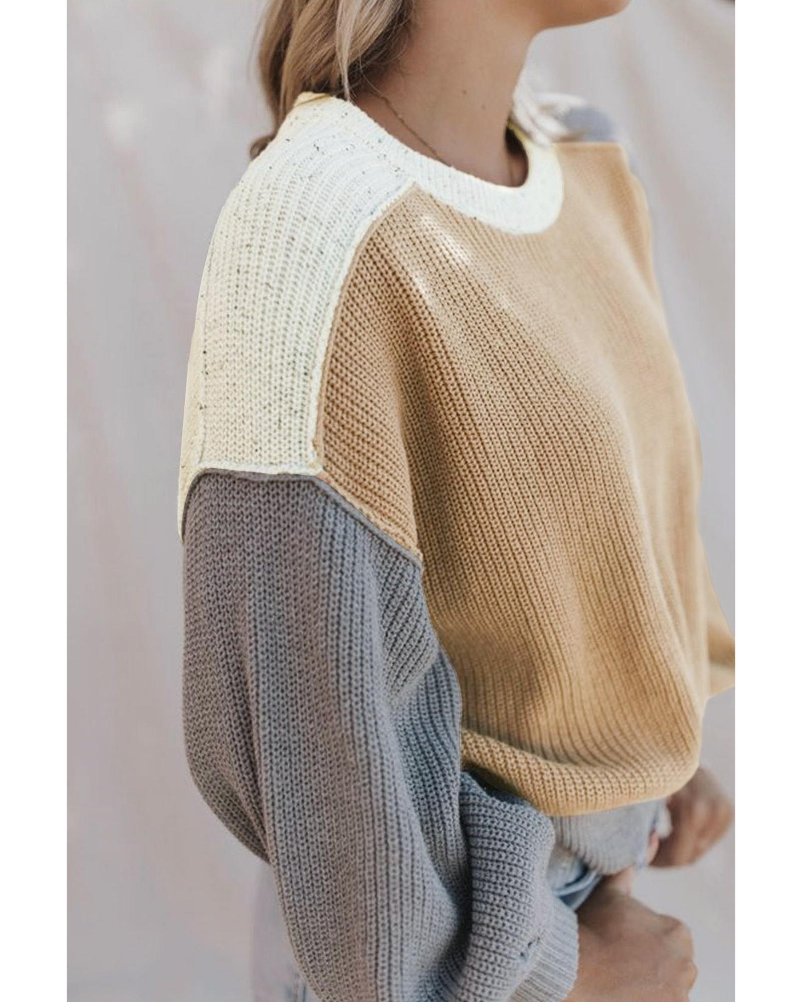 This multicolor color block patchwork baggy sweater combines trendy style with comfort, making it suitable for cold days. Its relaxed fit and vibrant design make it a versatile addition to any wardrobe.