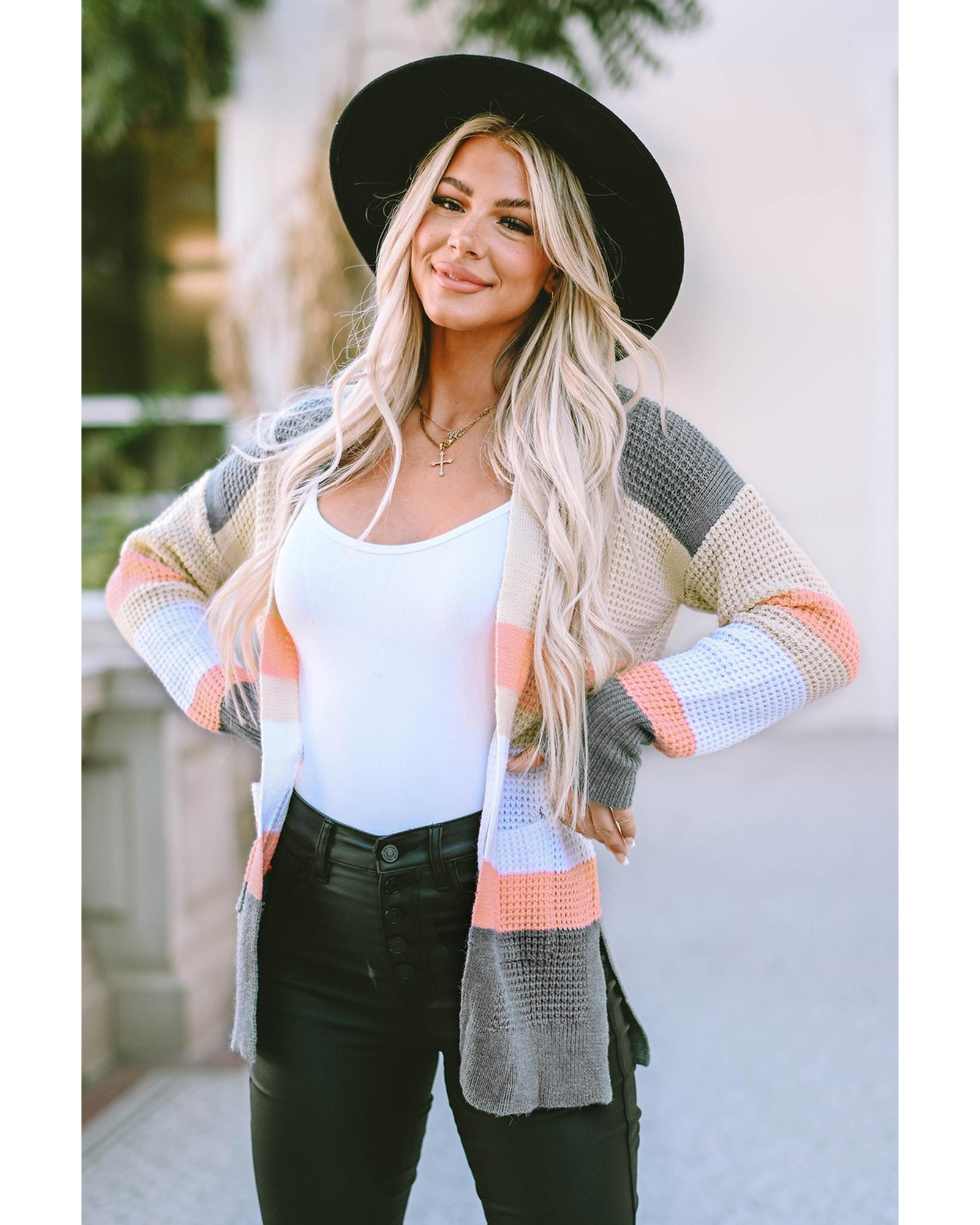 - 1 x Multicolor Color Block Striped Open Cardigan