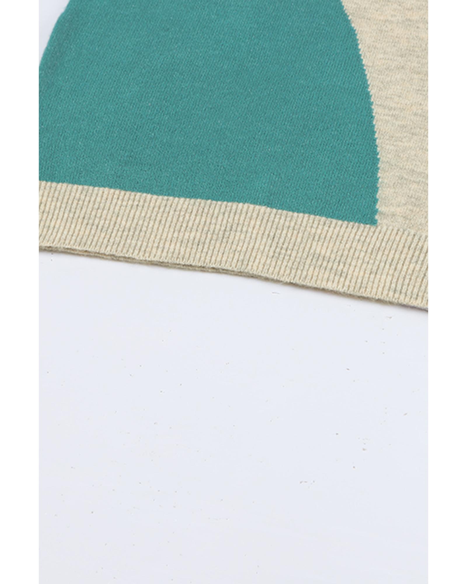 Multicolor Colorblock Ribbed Trim Round Neck Sweater – S