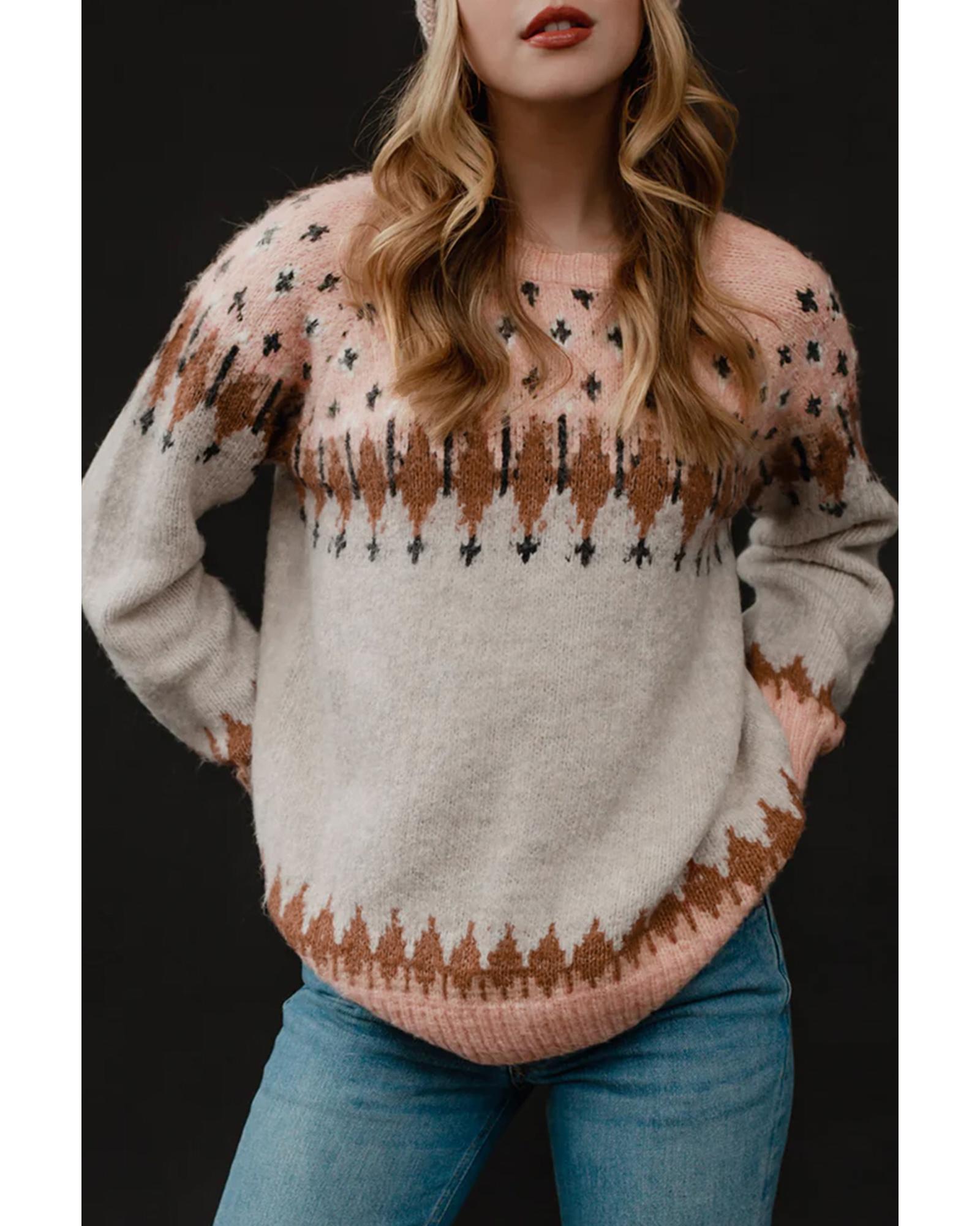 Multicolor Mixed Geometric Detail Raglan Sleeve Sweater – L