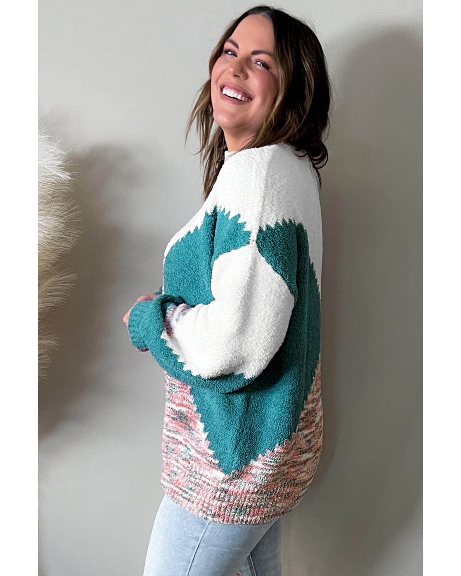 - 1 x Multicolor Scalloped Color Block Plus Size Sweater