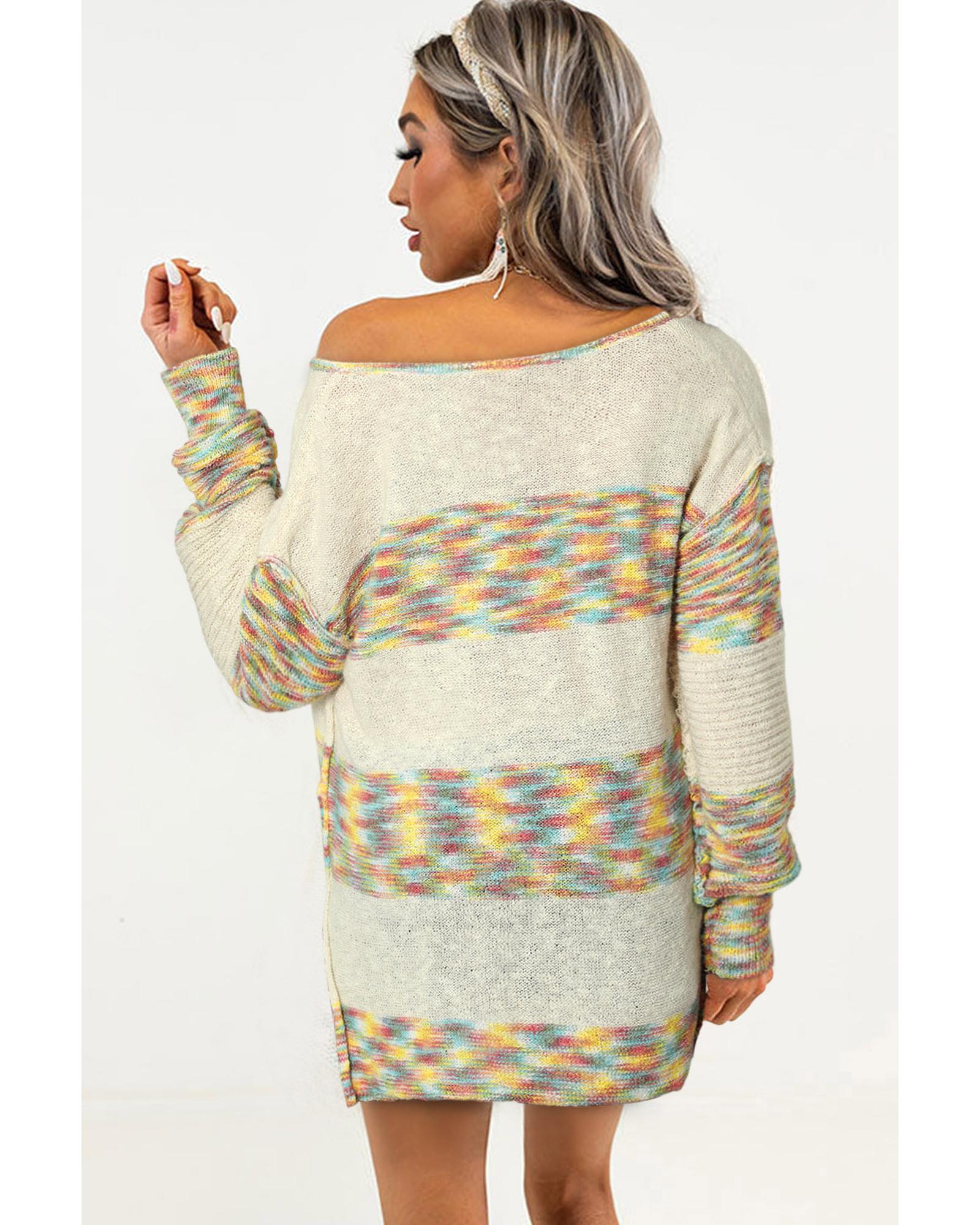 This multicolor space dye Henley knit sweater combines casual style with trendy design elements. It features a fitted silhouette with fashionable details, making it suitable for everyday wear and casual outings.