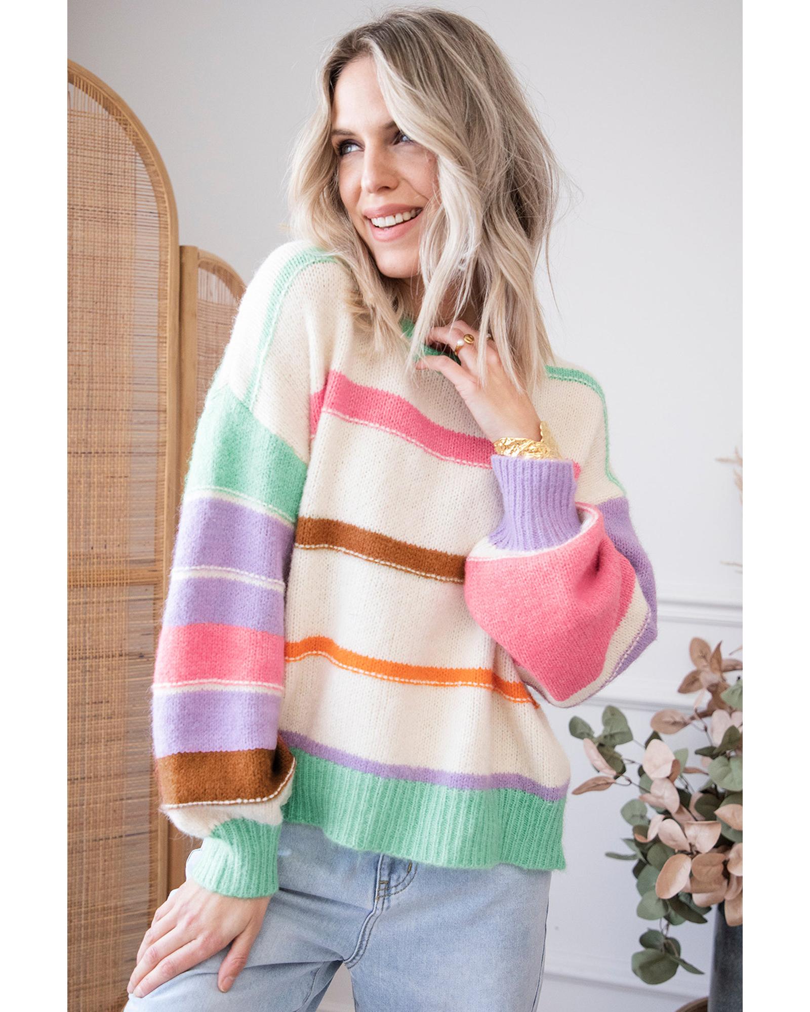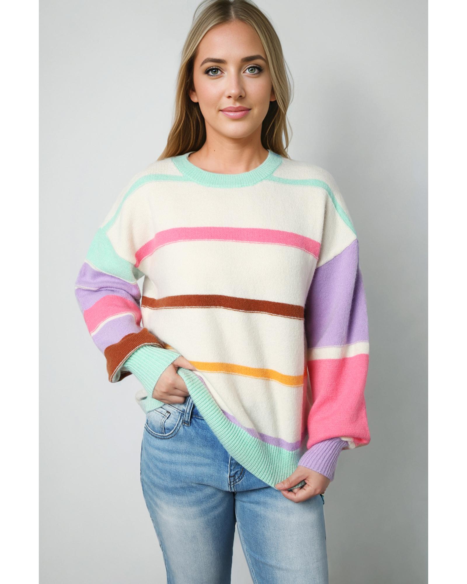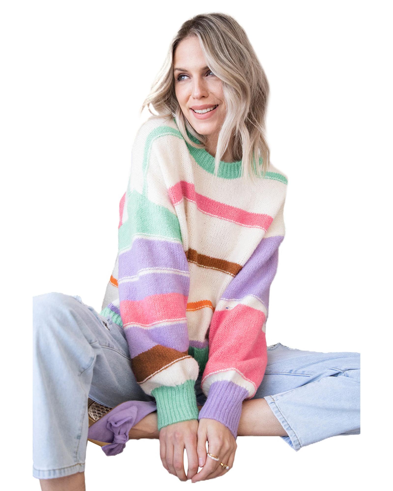 - 1 x Multicolor Striped Colorblock Drop Shoulder Sweater