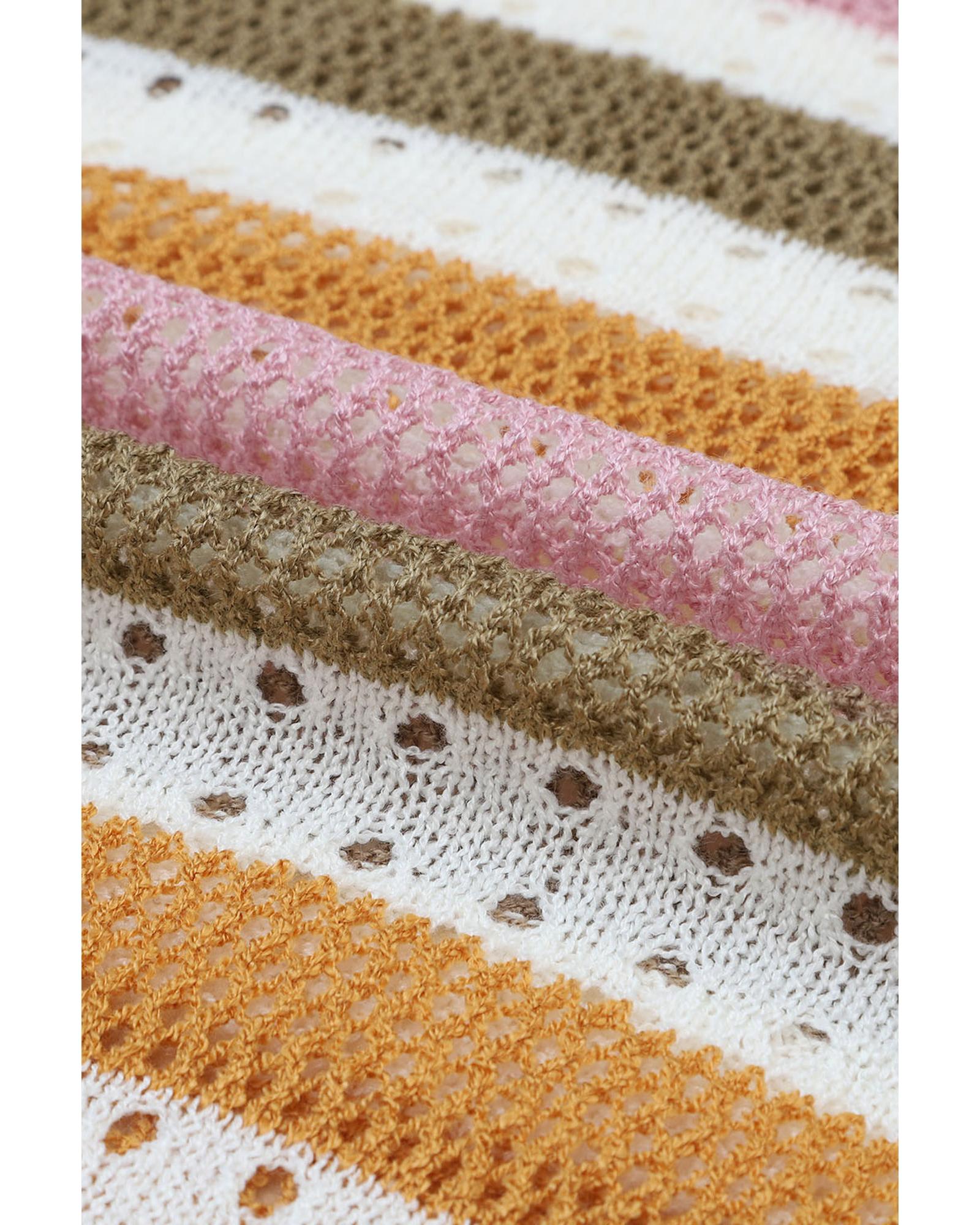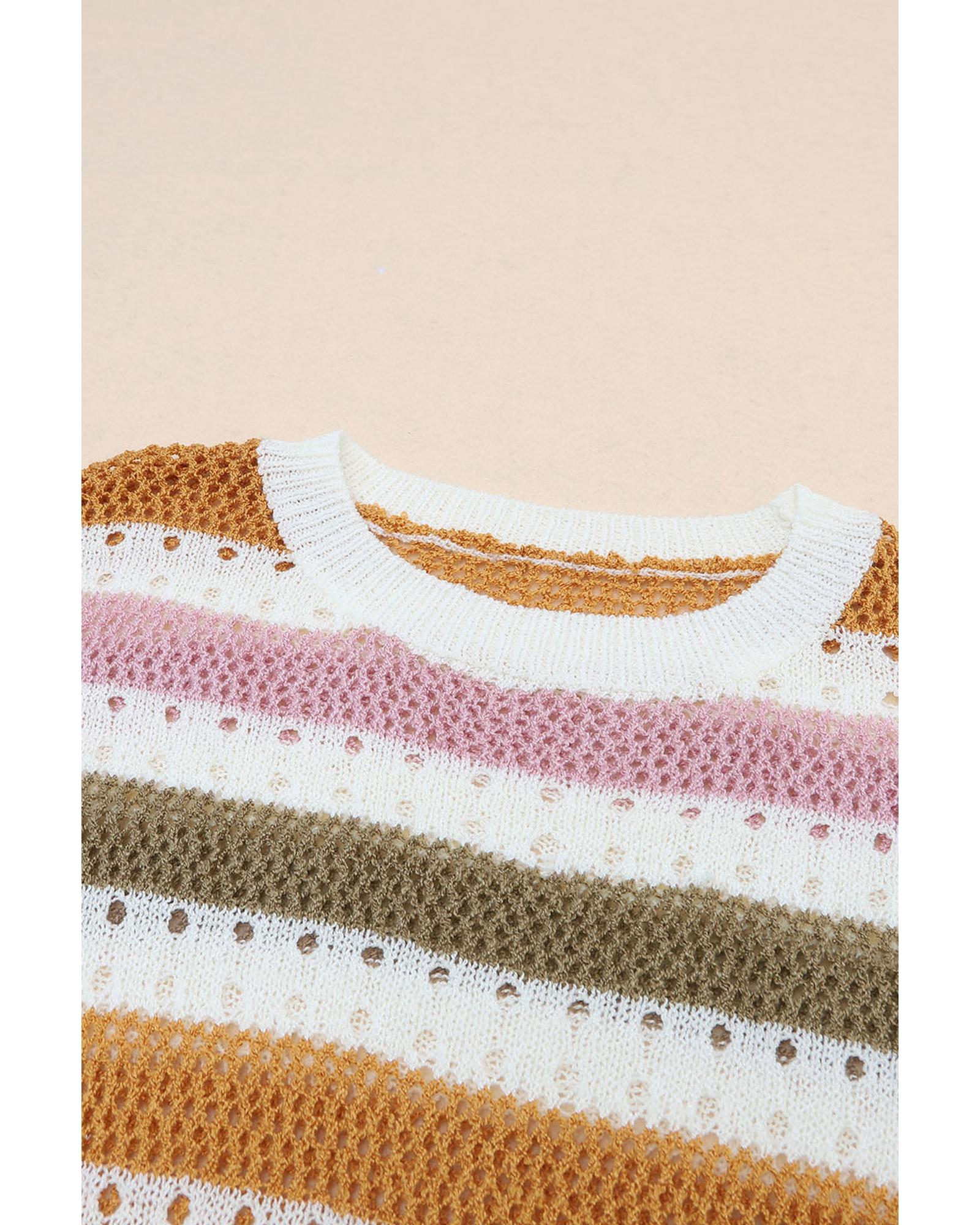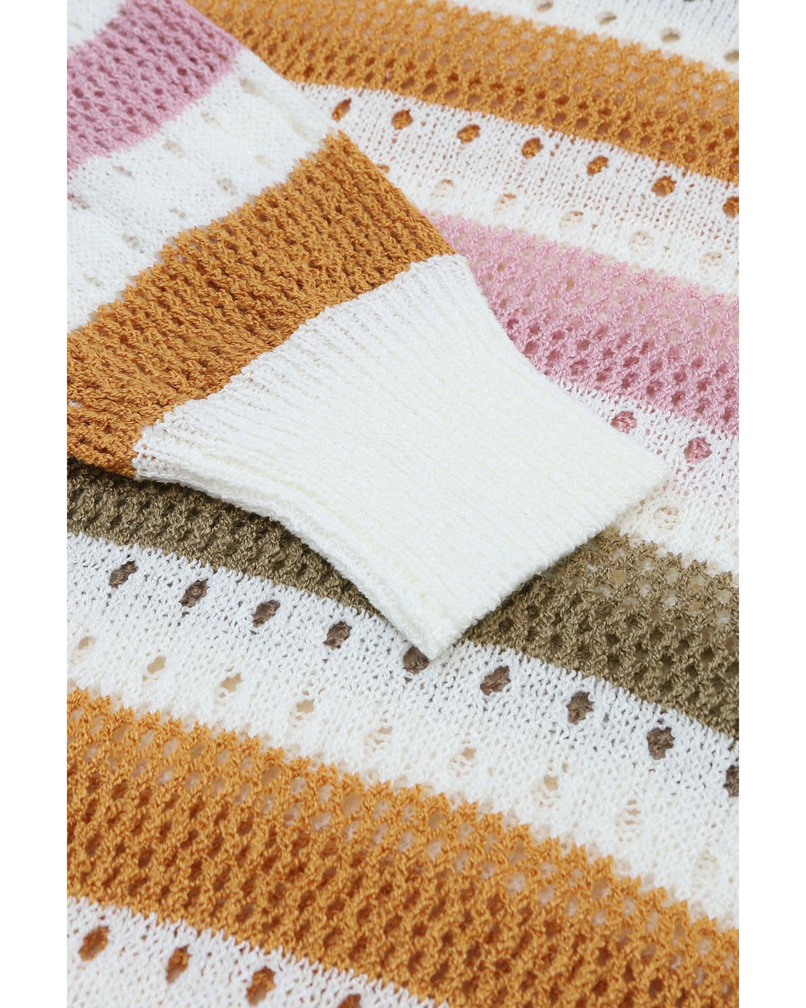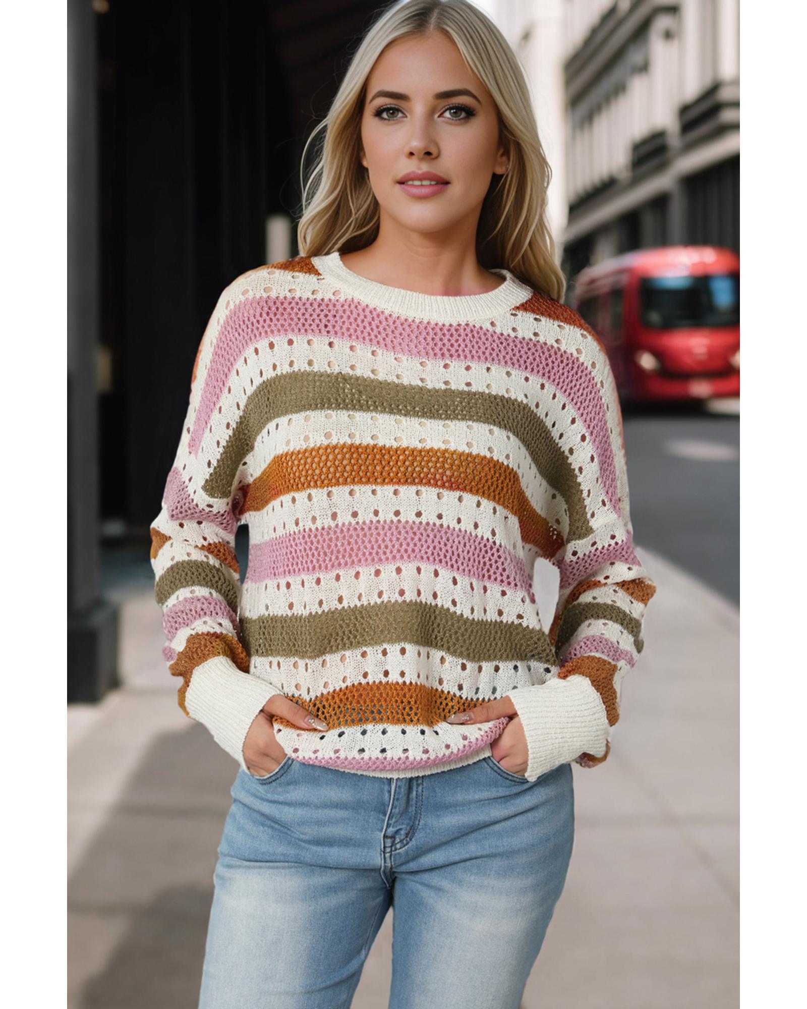This multicolor striped hollowed knitted loose sweater offers a trendy and comfortable style suitable for various occasions. Its versatile design and relaxed fit make it an easy addition to any wardrobe, providing both fashion and comfort.