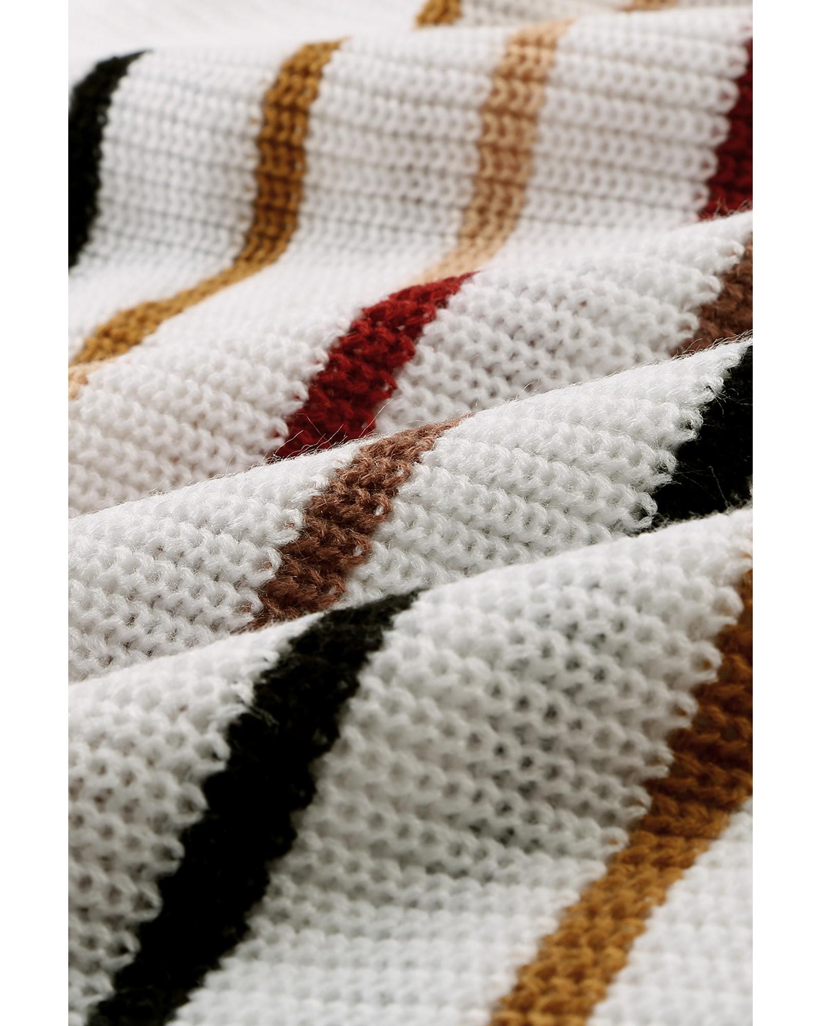 This multicolor striped knit sweater features a trendy fitted design with a vibrant pattern, making it a versatile addition to any wardrobe. Crafted from high-quality materials, it offers both comfort and durability, suitable for casual or dressy occasions.