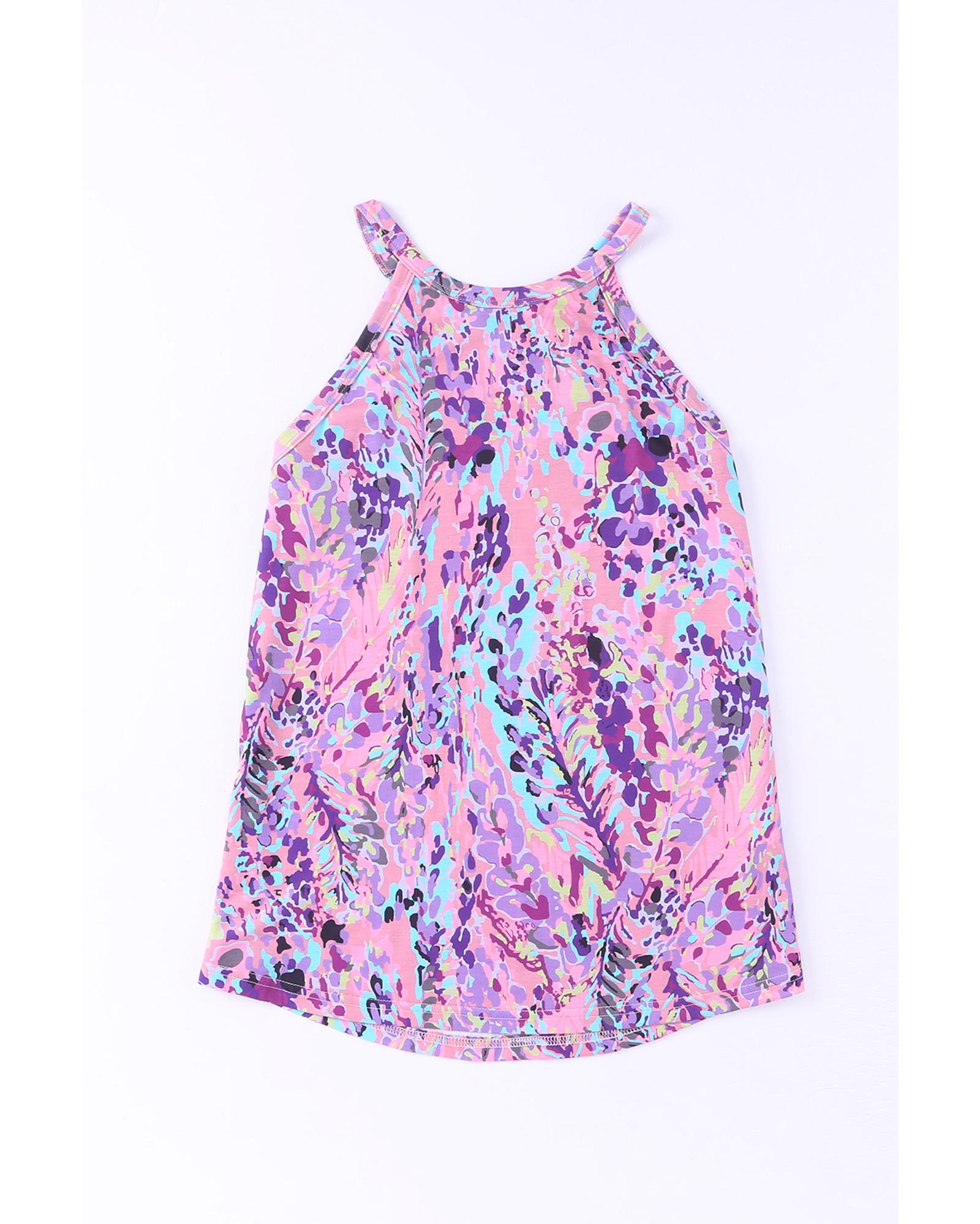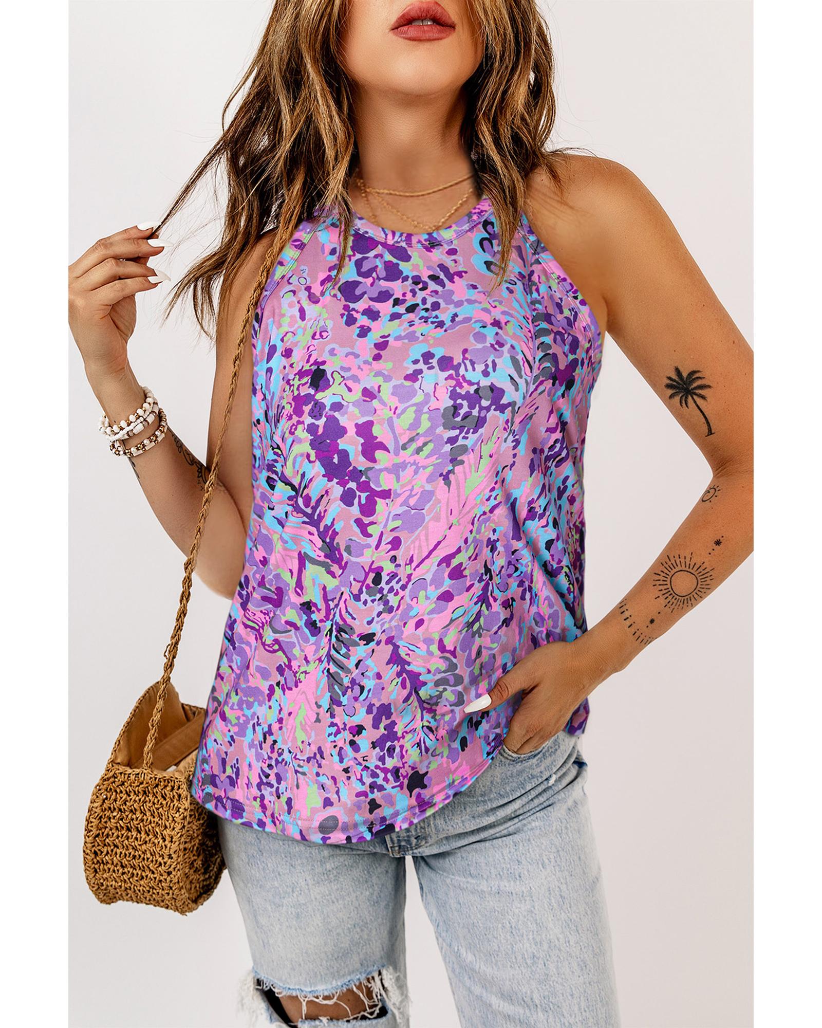 This multicolor tropical floral print racerback tank top offers a trendy and fitted style suitable for various casual occasions. Made from soft and airy material, it provides comfort during hot days and is ideal for vacation, beach outings, club nights, or everyday wear. The charming floral design adds a fashionable touch, making it a versatile addition to your spring, summer, and fall wardrobe.