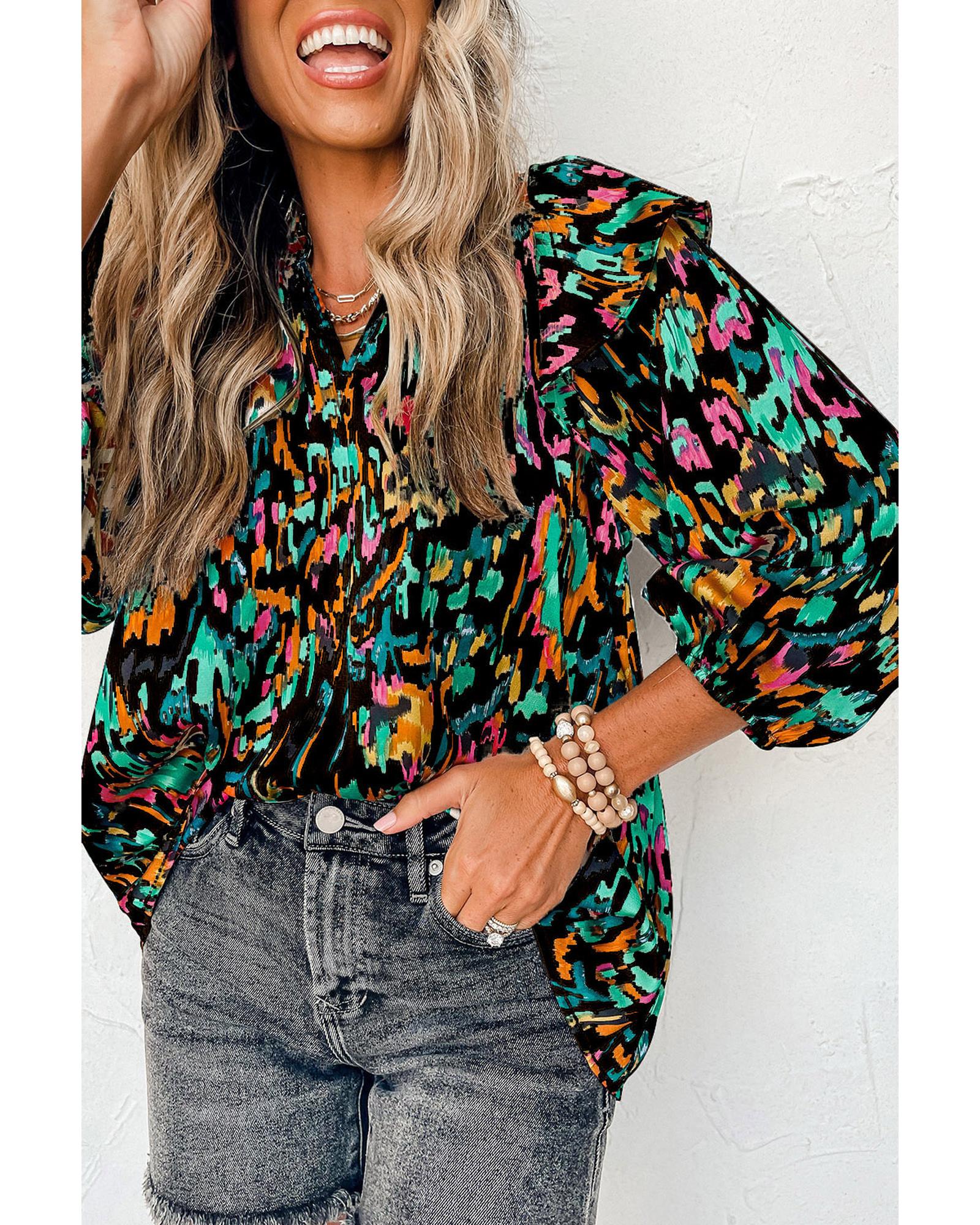 This blouse features a multicolour abstract print with a trendy fitted design. It is crafted from lightweight, flowing fabric, making it suitable for any occasion and easy to wear throughout the day.